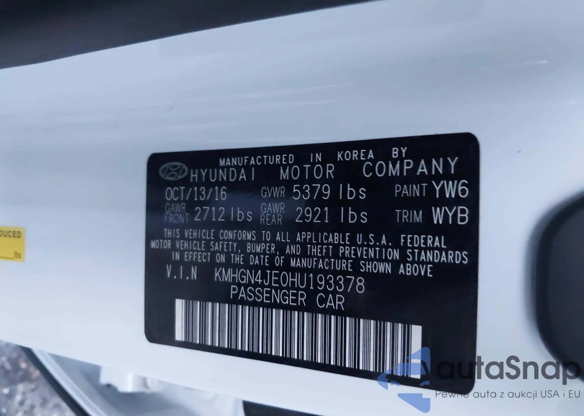 • VIN: KMHGN4JE0HU193378