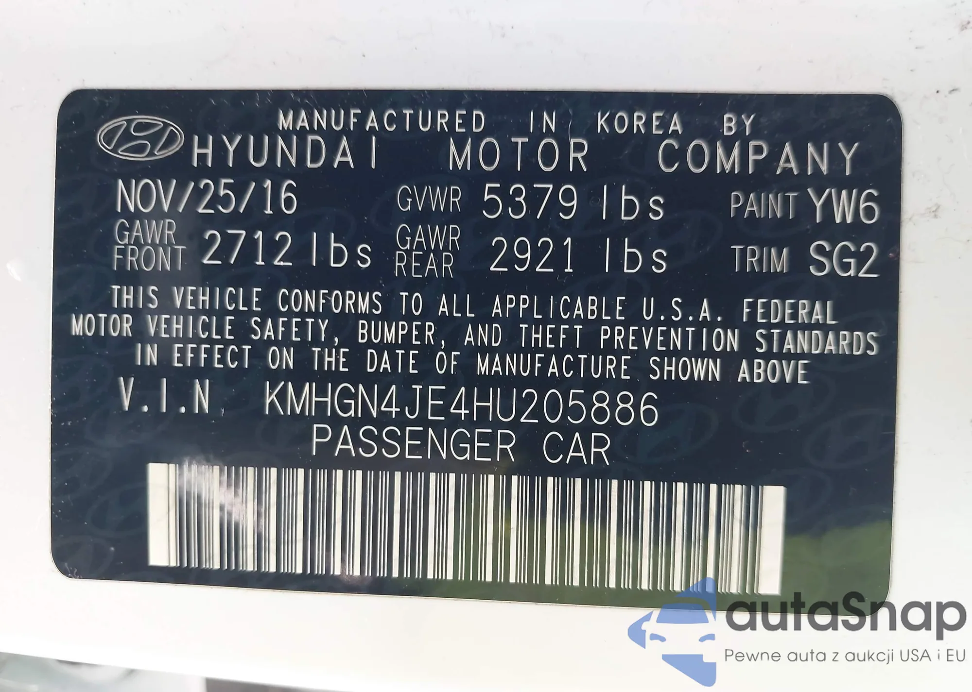 VIN: KMHGN4JE4HU205886