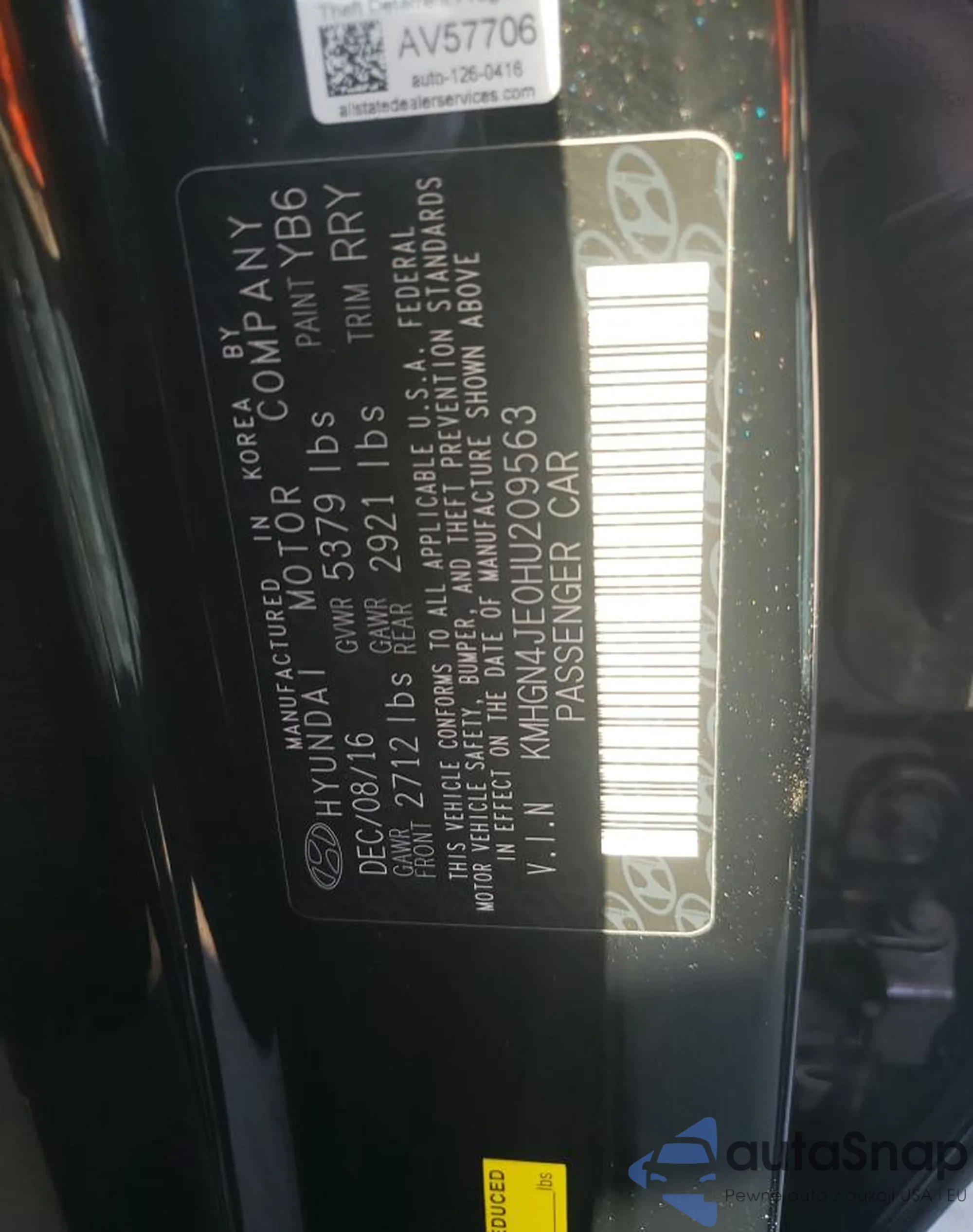 VIN: KMHGN4JE0HU209563
