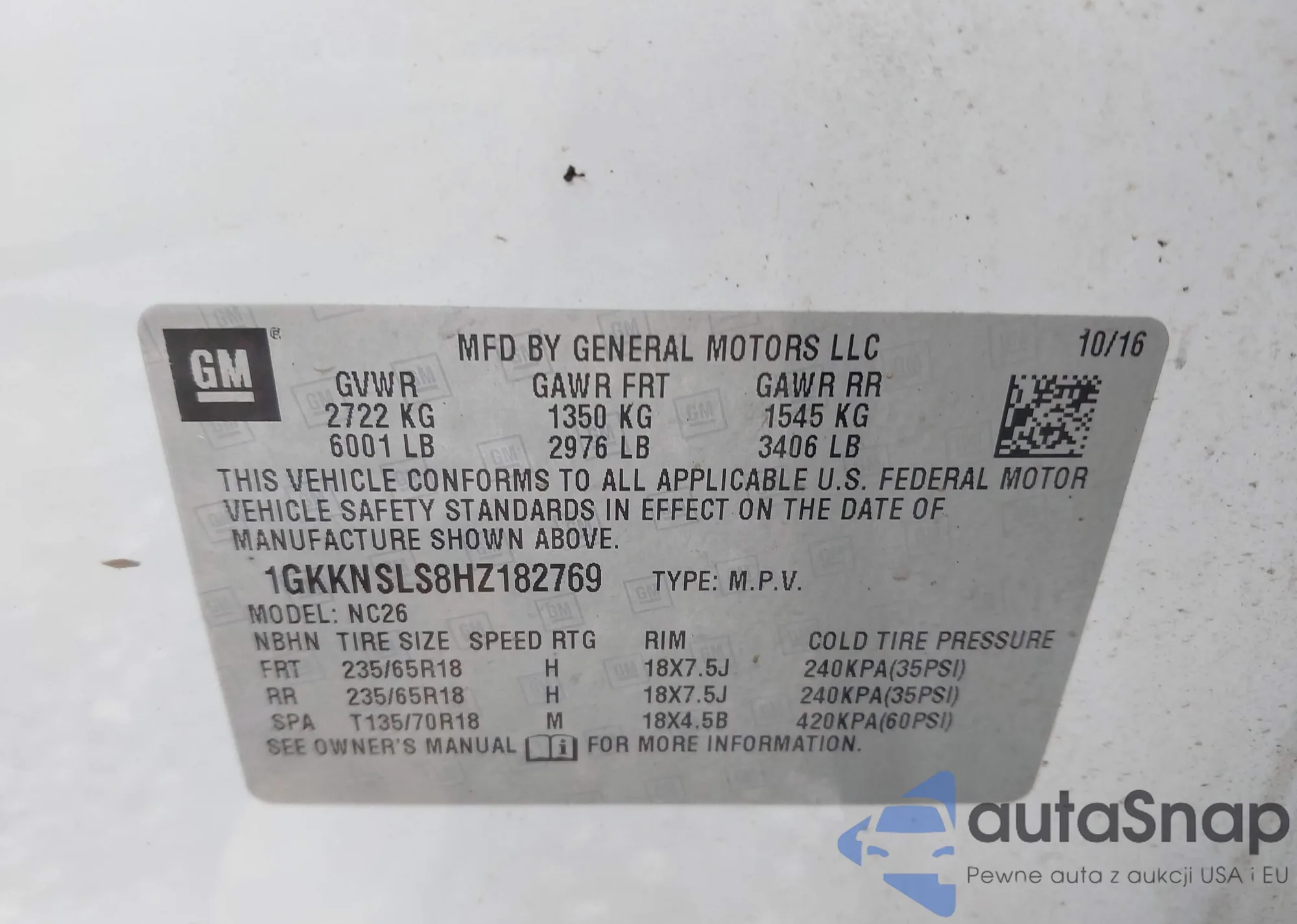VIN: 1GKKNSLS8HZ182769