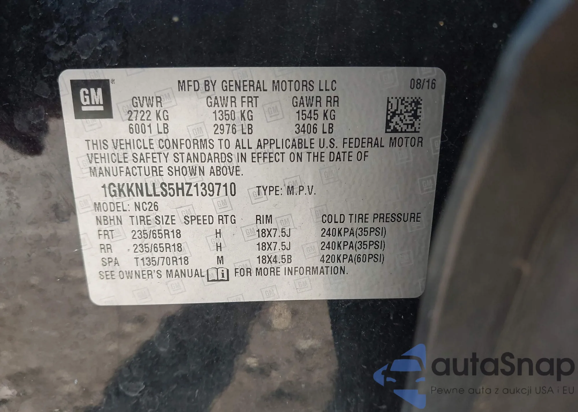 VIN: 1GKKNLLS5HZ139710
