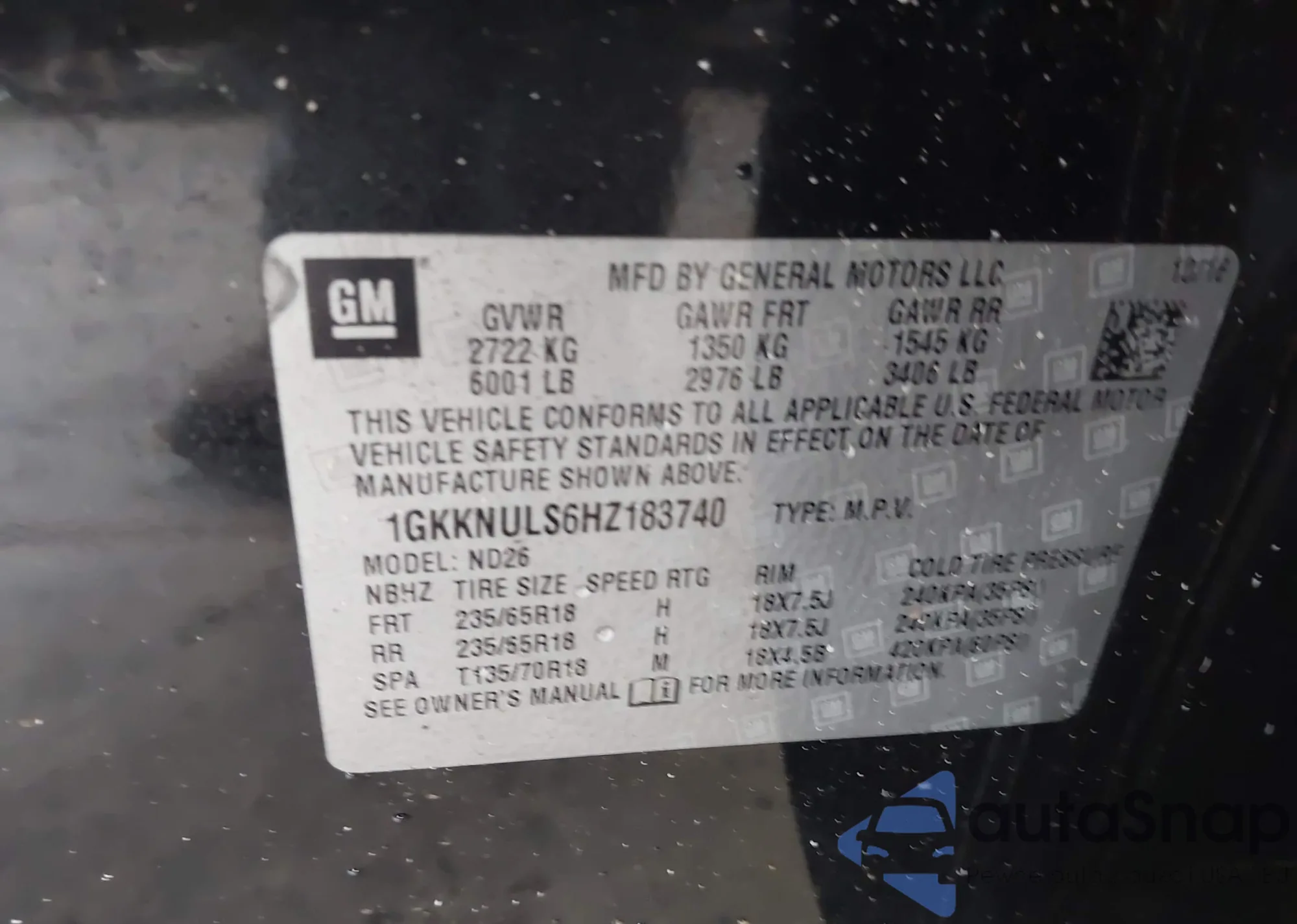 VIN: 1GKKNULS6HZ183740