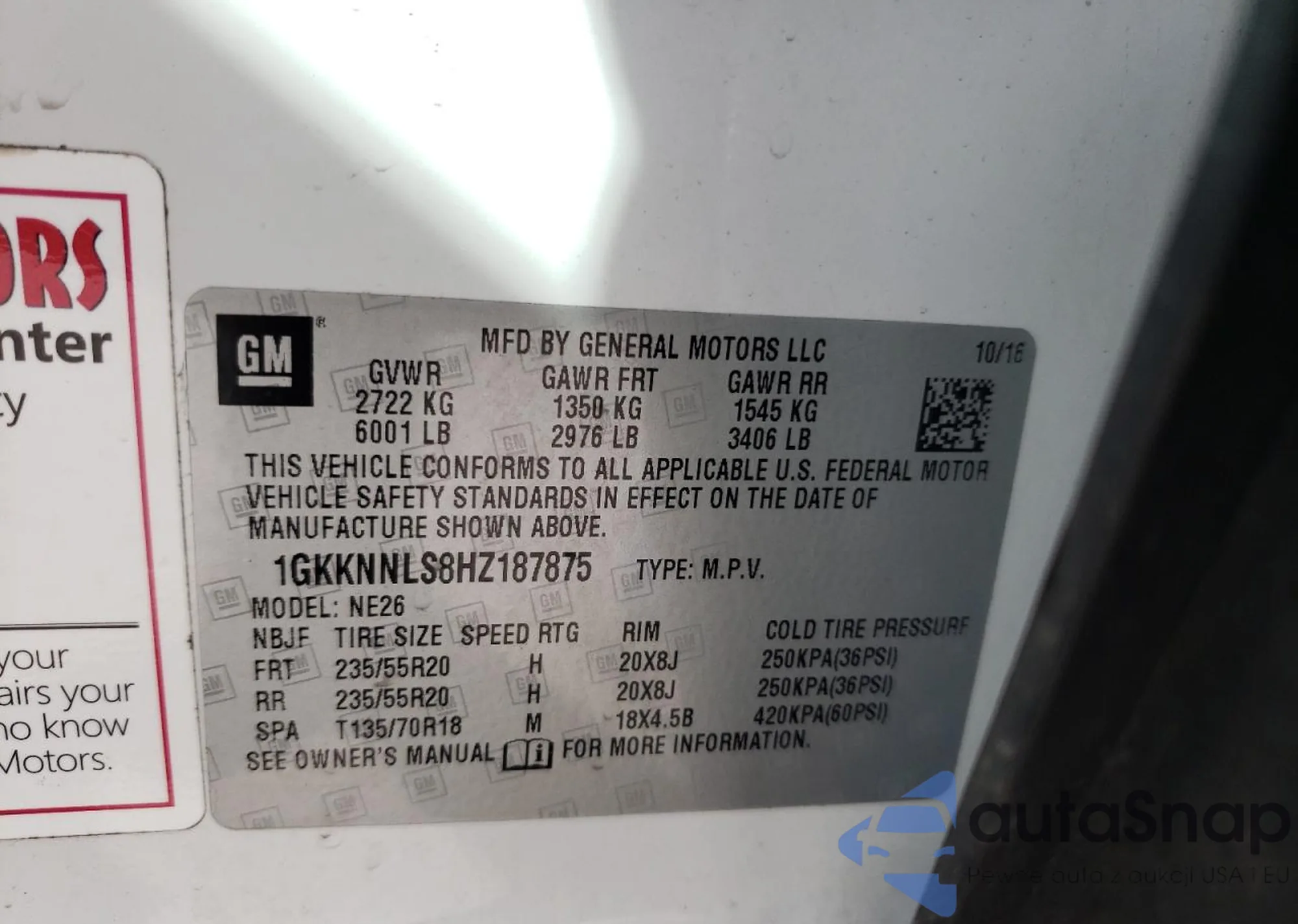 VIN: 1GKKNNLS8HZ187875