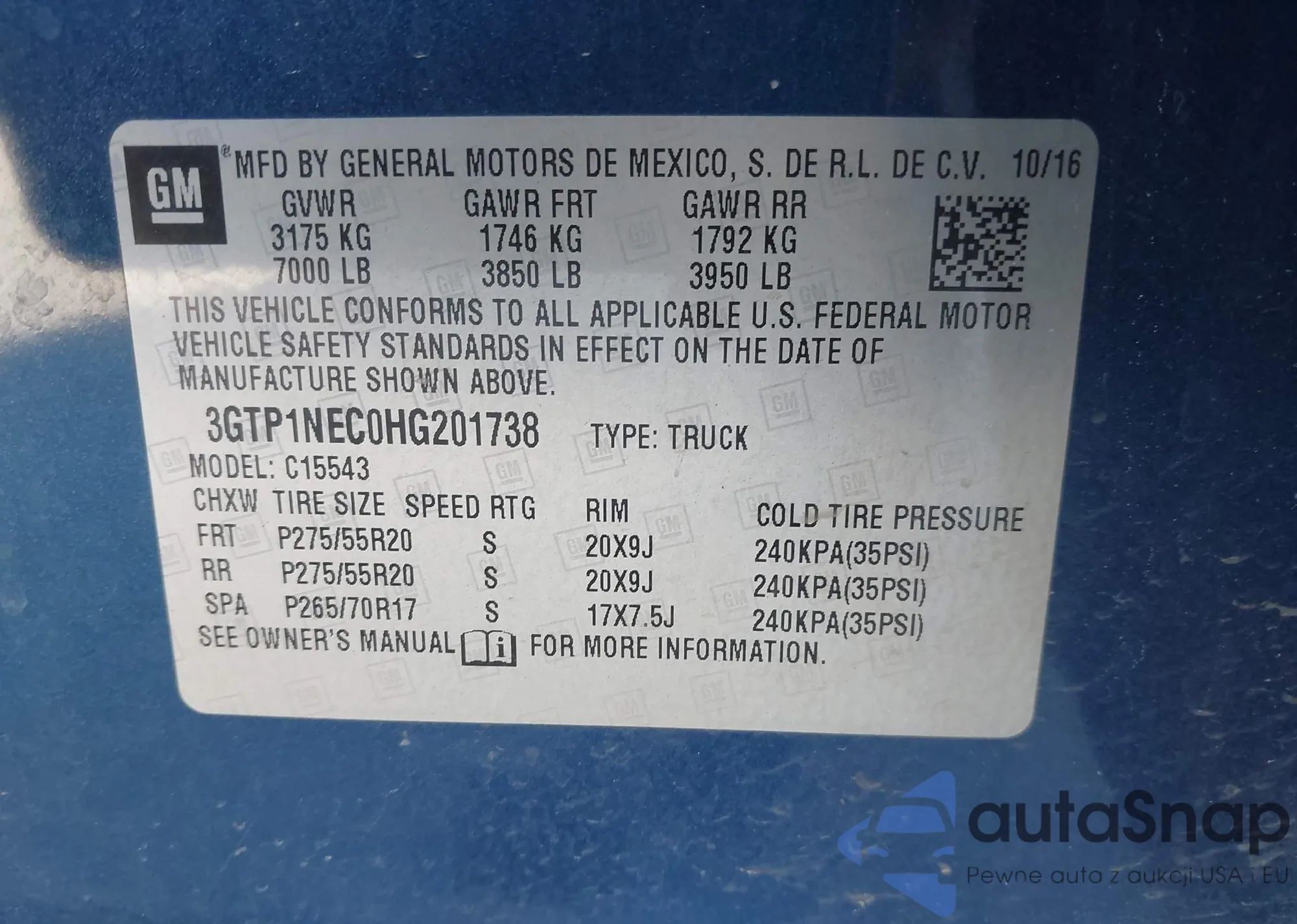 VIN: 3GTP1NEC0HG201738