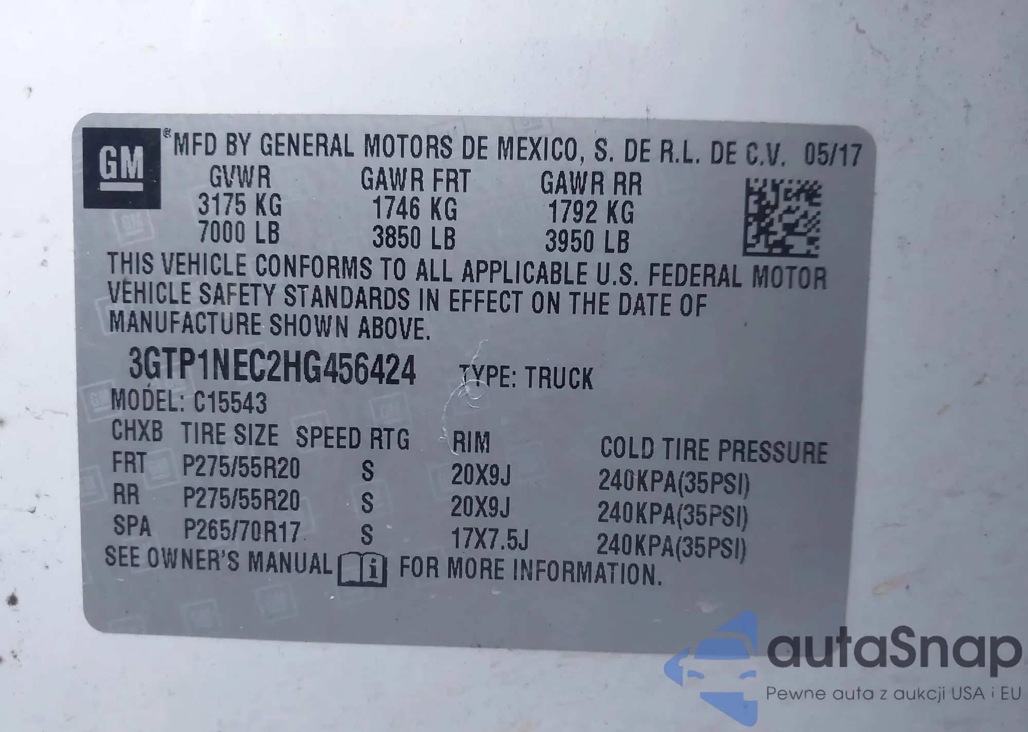 VIN: 3GTP1NEC2HG456424