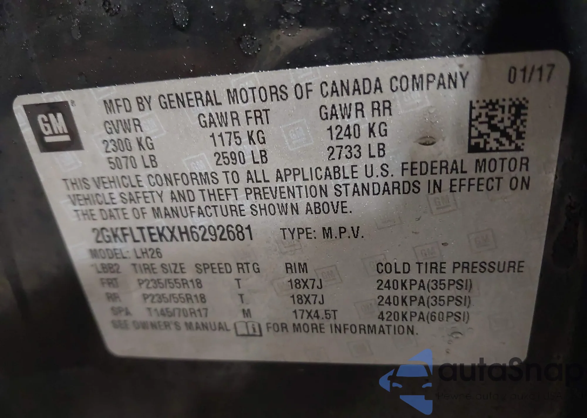 VIN: 2GKFLTEKXH6292681