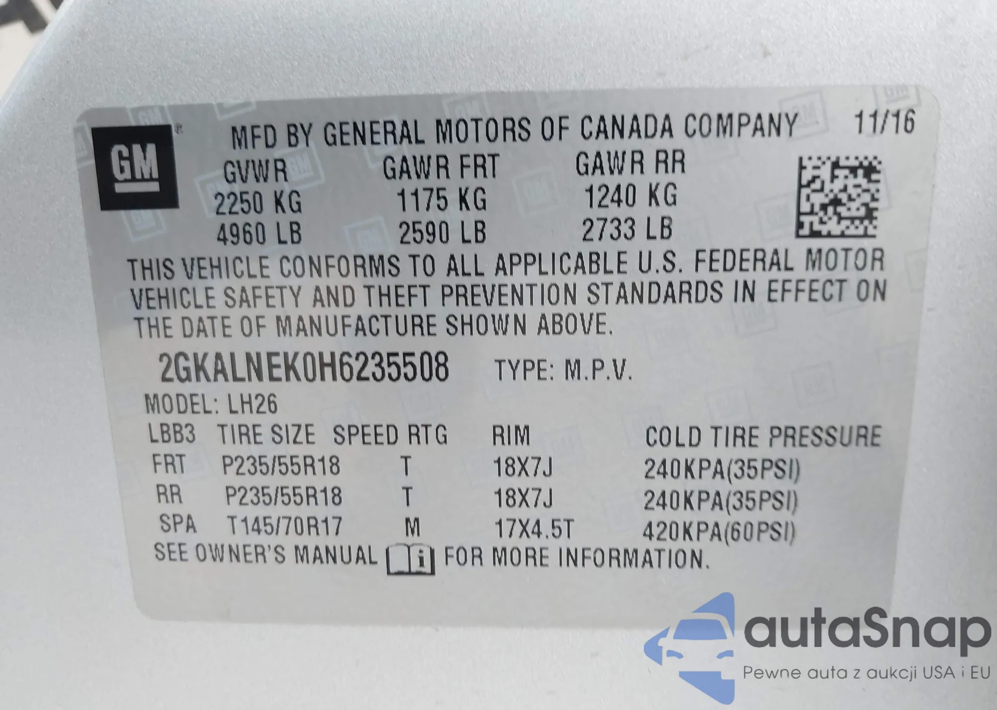 The car GMC Terrain 2017 (VIN 2GKALNEK0H6235508) has not been auctioned before. The documents are clean, and the mileage matches or is below the market average. Sold by an insurance company – we recommend purchase. Delivery to the port will take approx. 6–8 weeks.