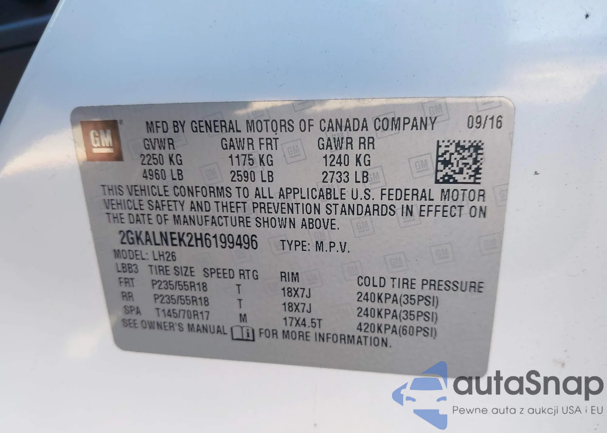 VIN: 2GKALNEK2H6199496