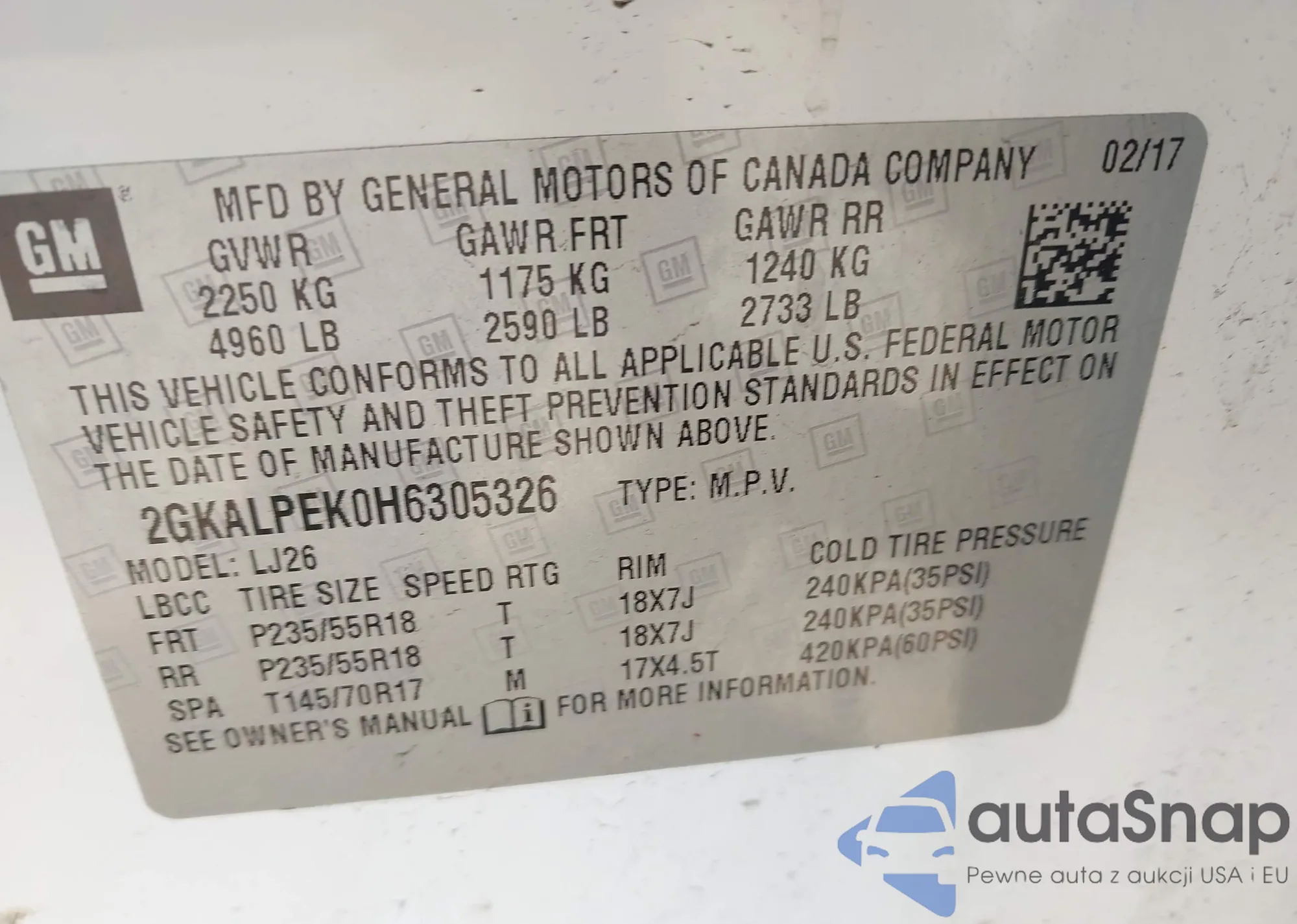 VIN: 2GKALPEK0H6305326
