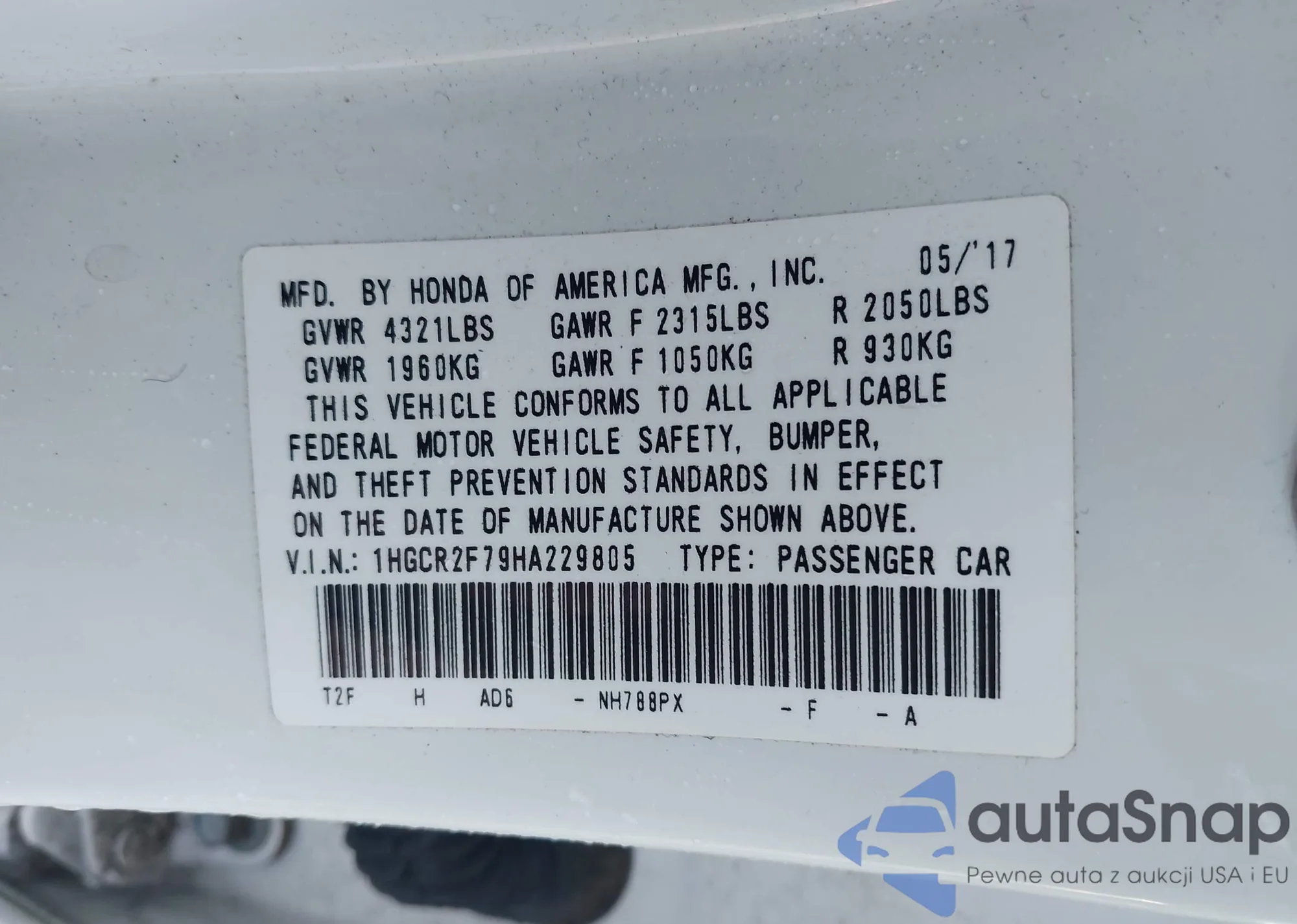 VIN: 1HGCR2F79HA229805