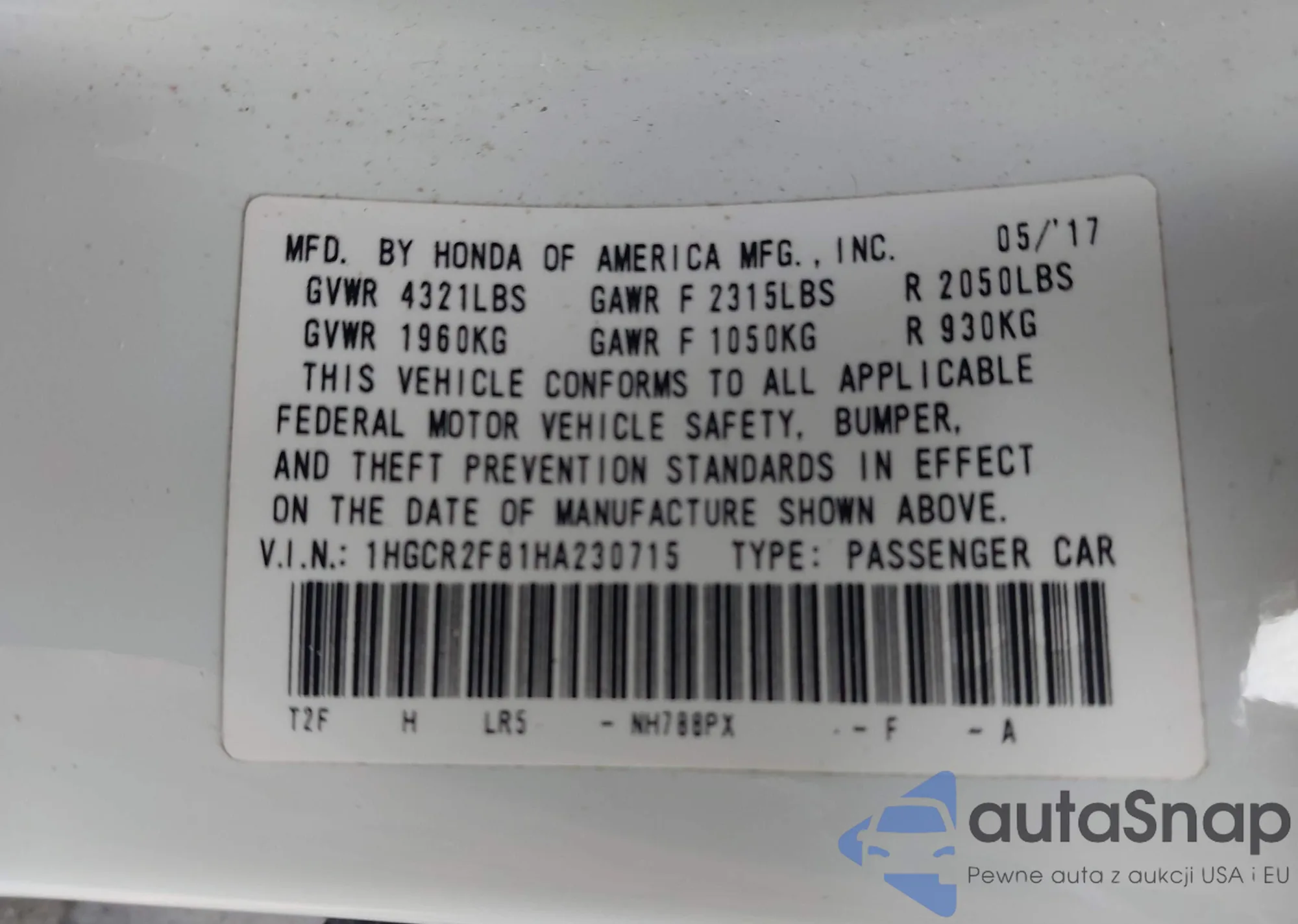 VIN: 1HGCR2F81HA230715