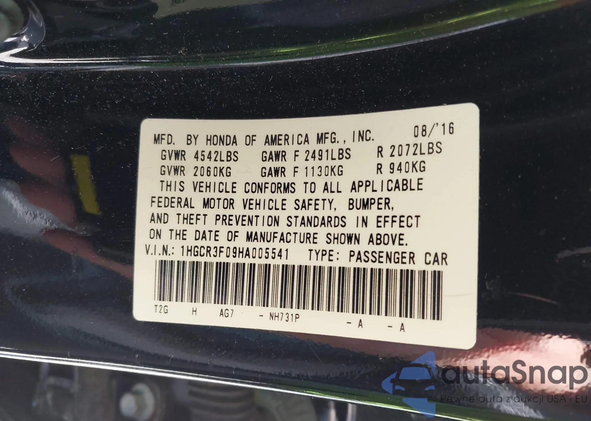 • VIN: 1HGCR3F09HA005541