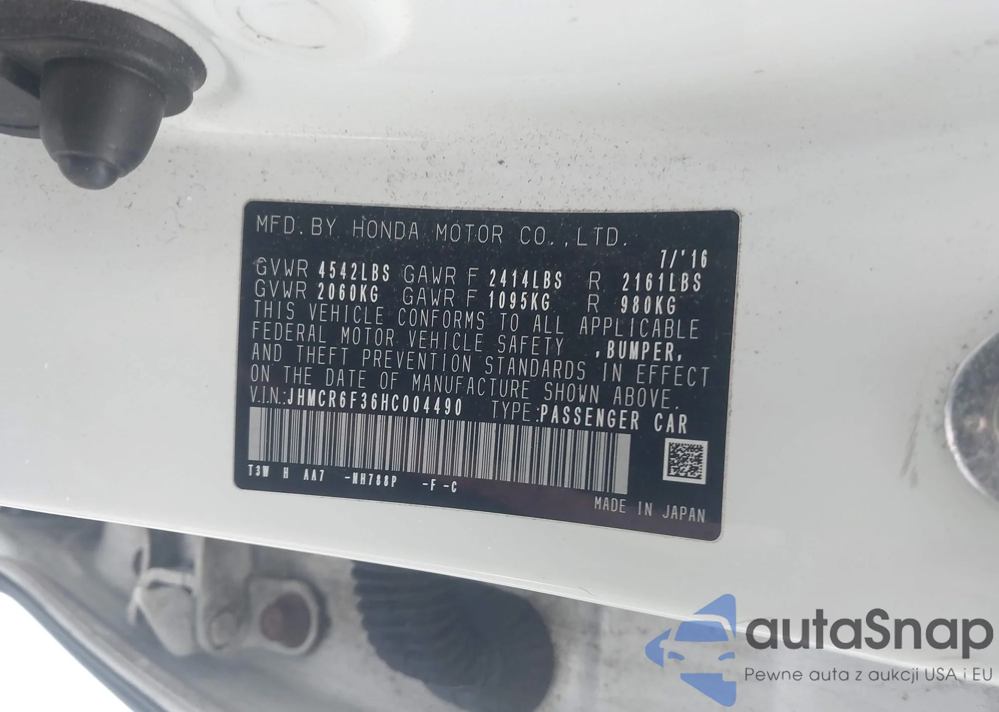 VIN: JHMCR6F36HC004490