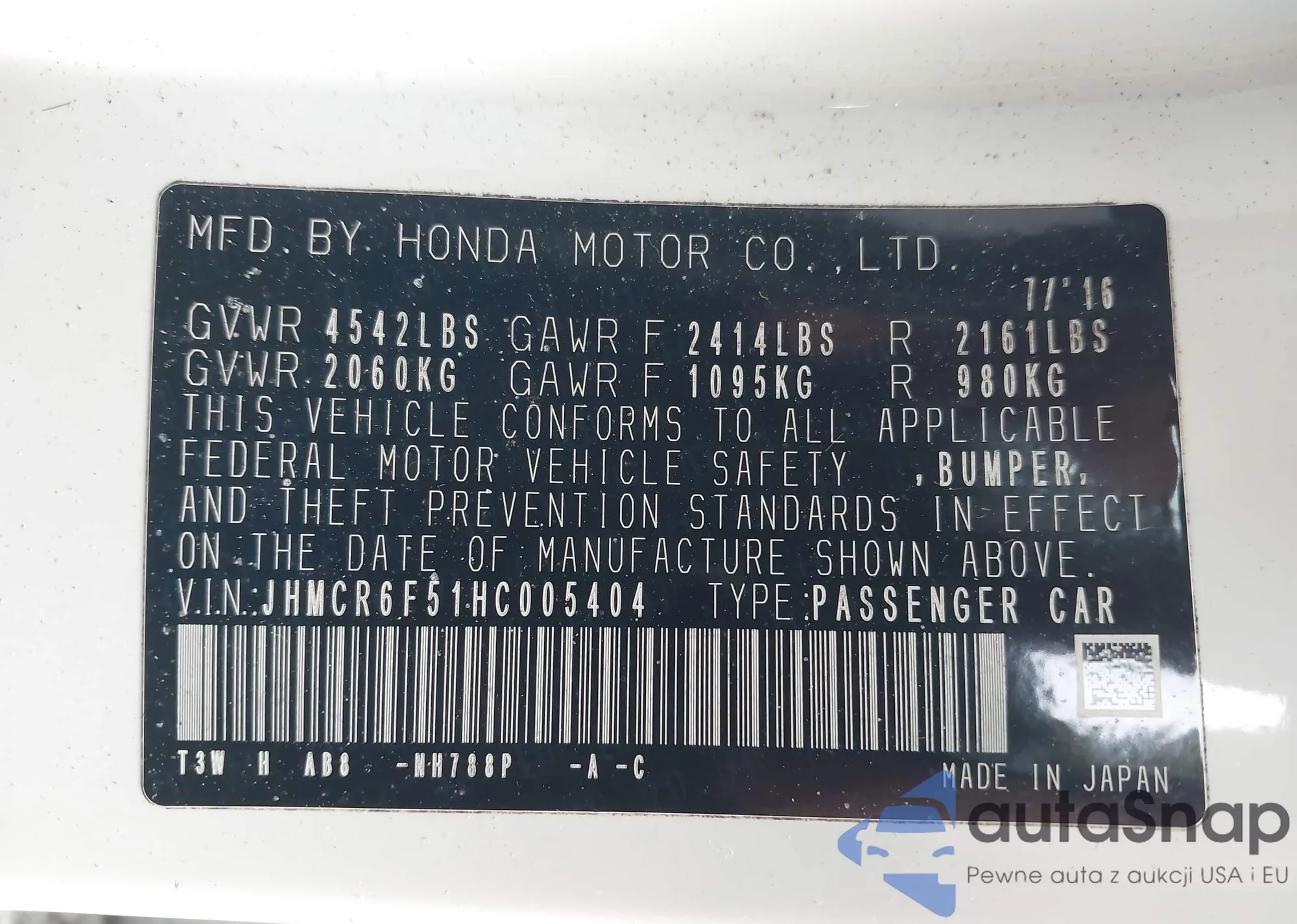 VIN: JHMCR6F51HC005404