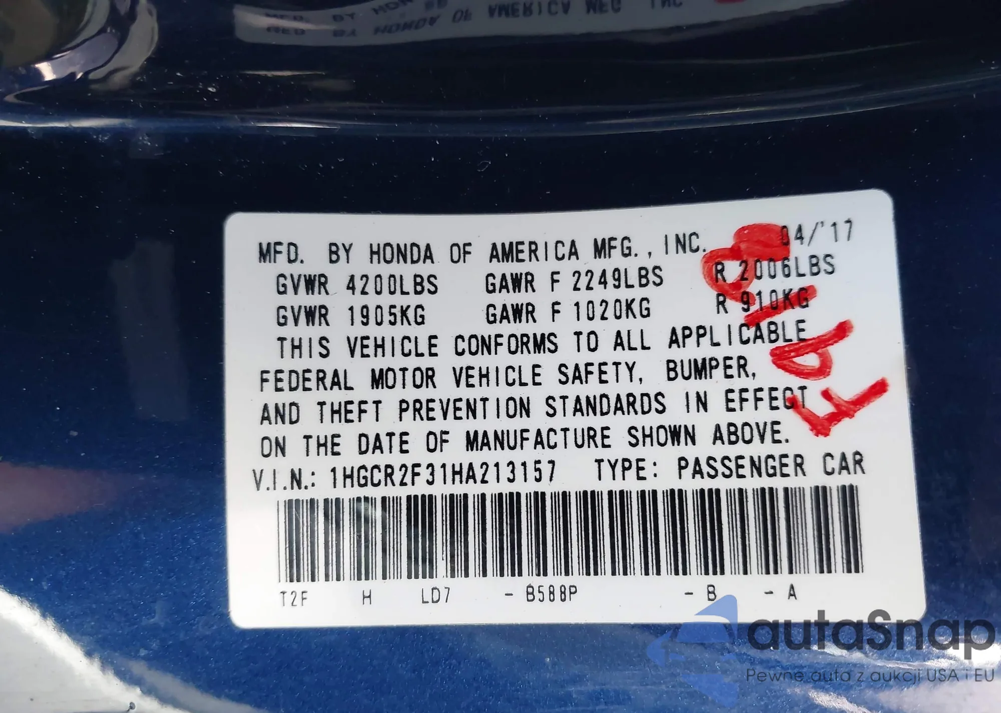 VIN: 1HGCR2F31HA213157