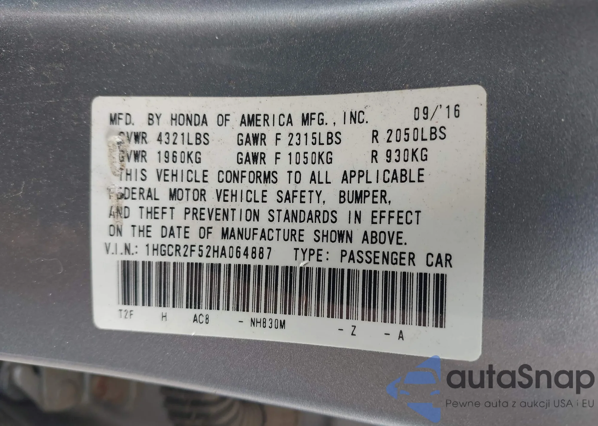 VIN: 1HGCR2F52HA064887