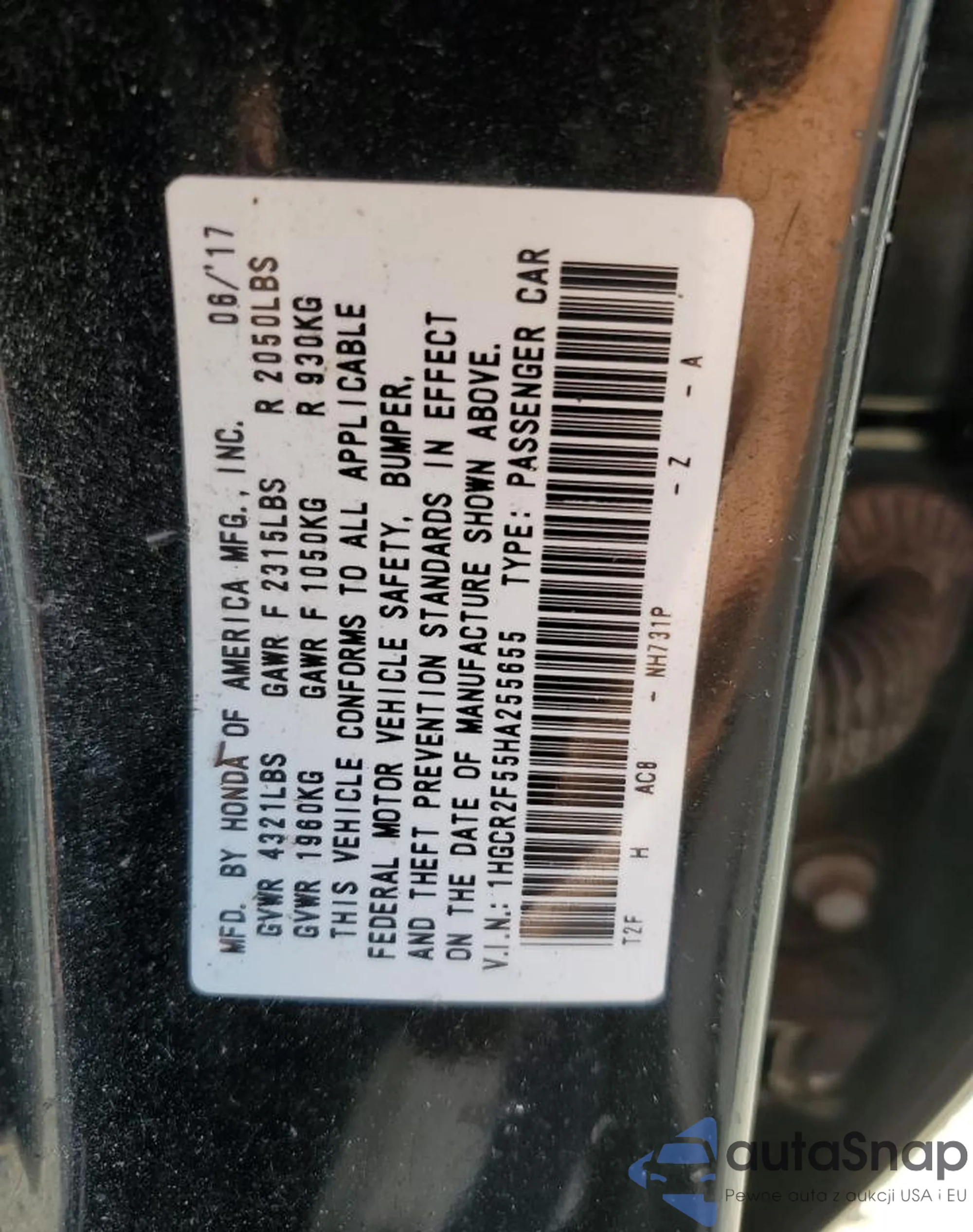 VIN: 1HGCR2F55HA255655