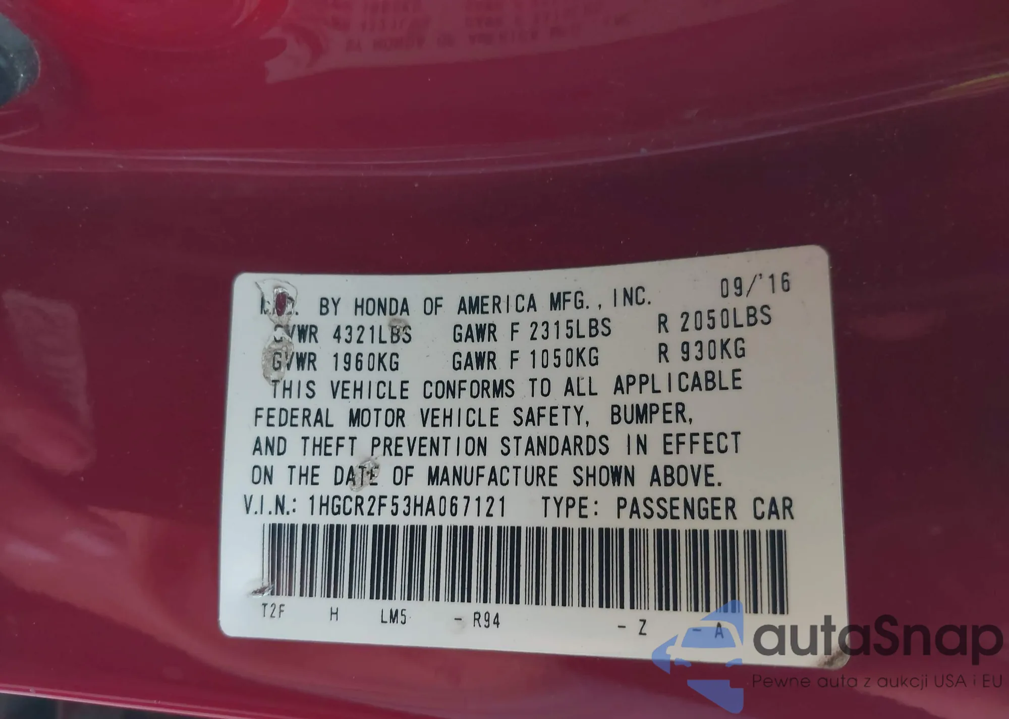 VIN: 1HGCR2F53HA067121