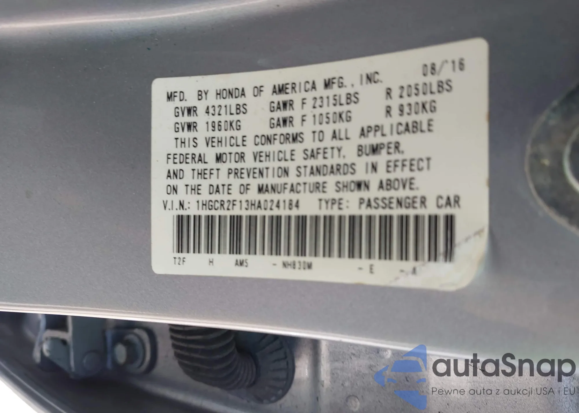 VIN: 1HGCR2F13HA024184
