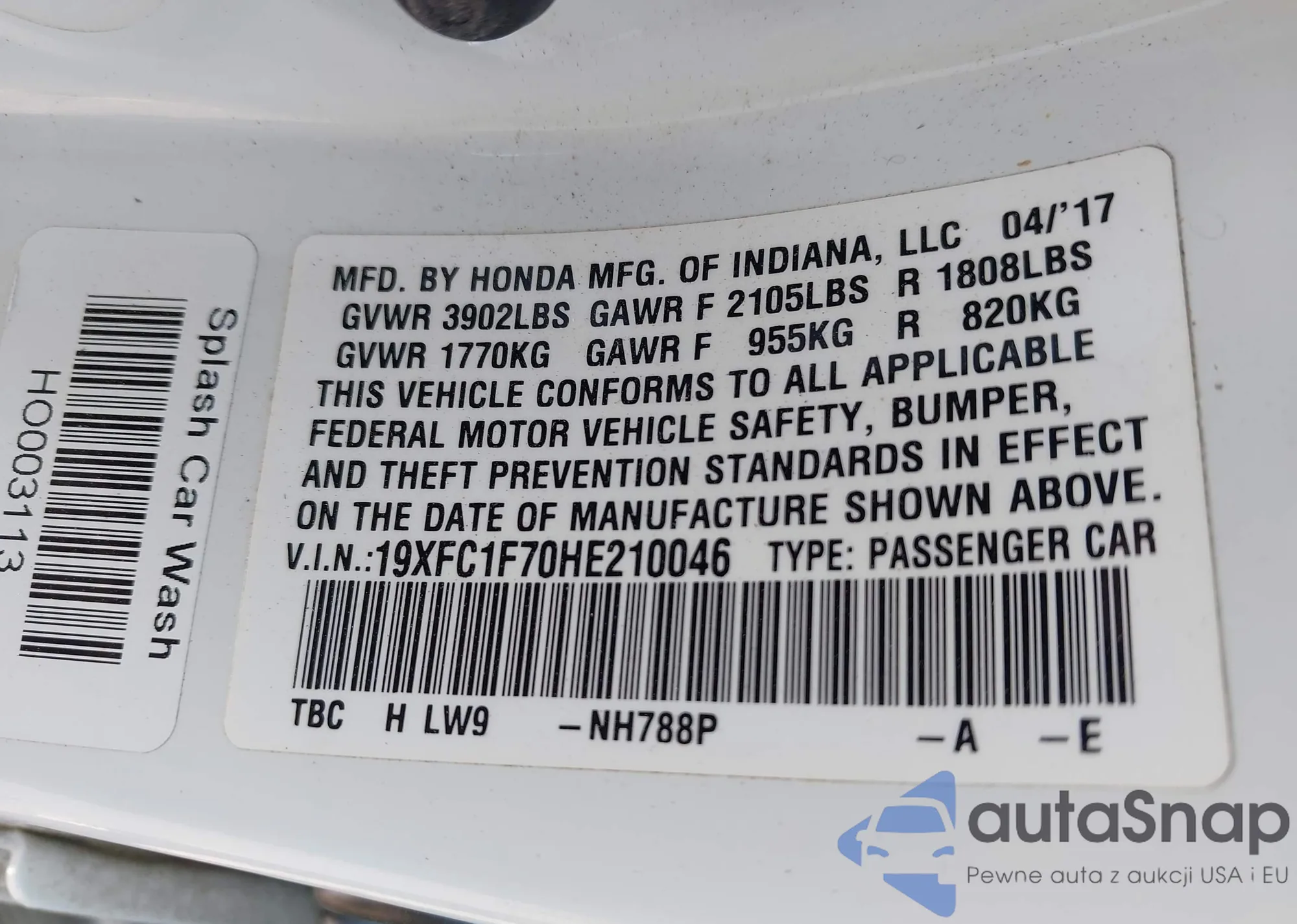 VIN: 19XFC1F70HE210046