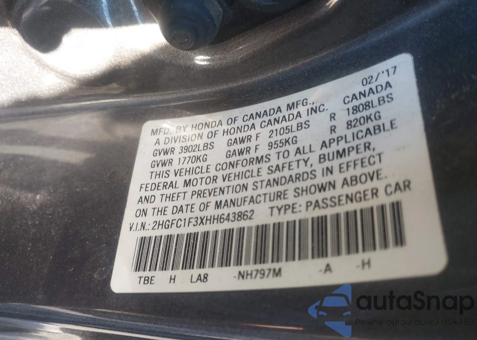 VIN: 2HGFC1F3XHH643862
