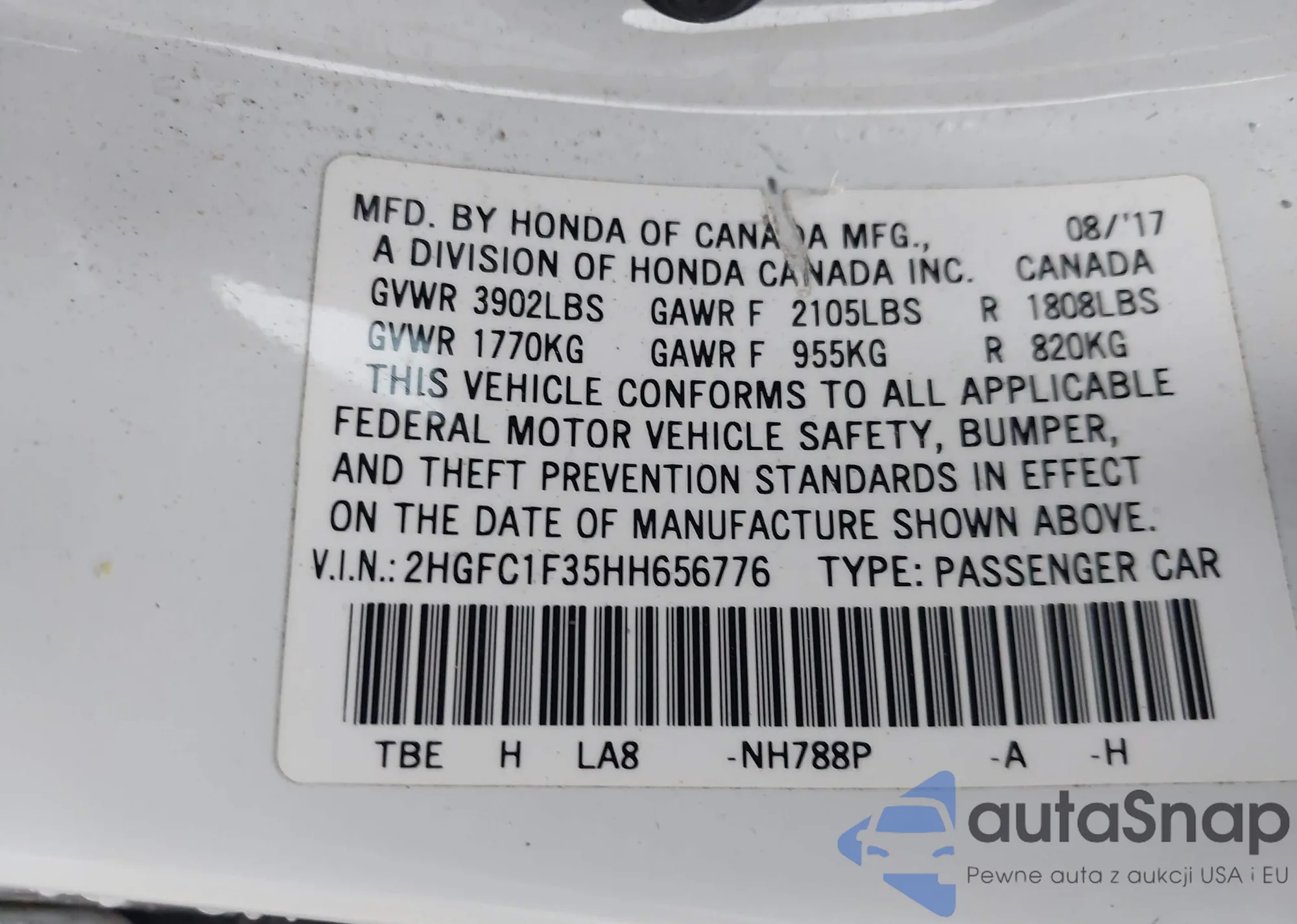 VIN: 2HGFC1F35HH656776