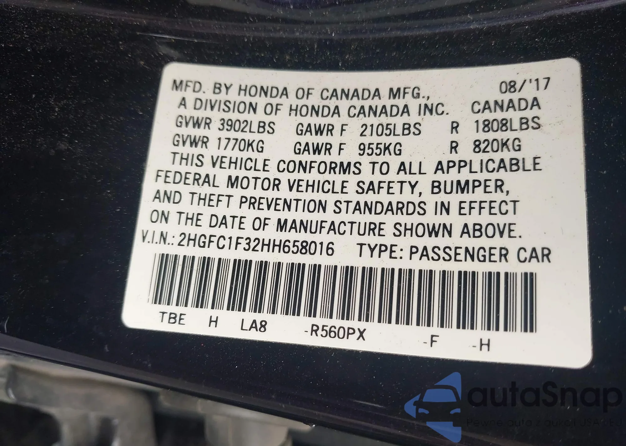 VIN: 2HGFC1F32HH658016