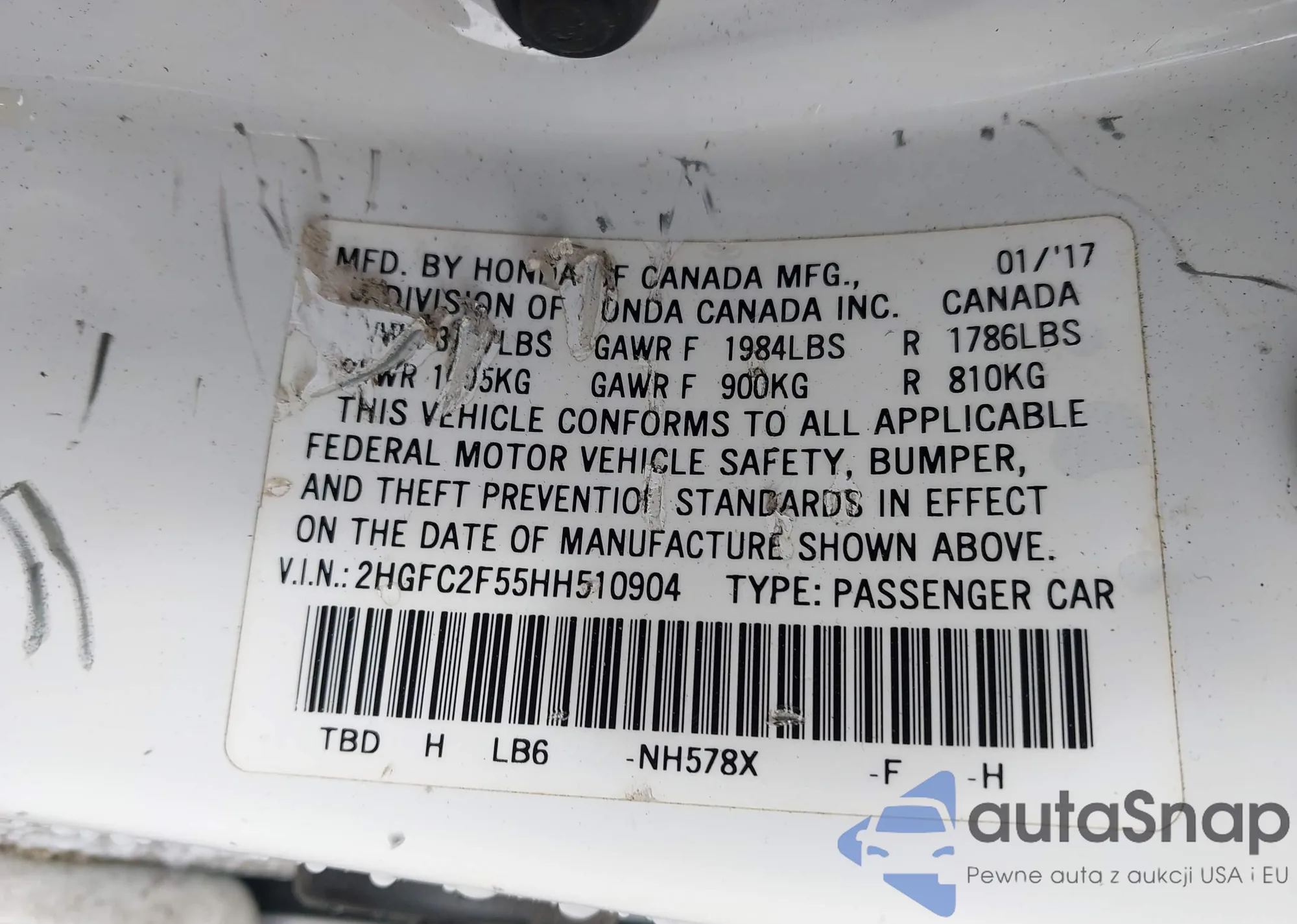 VIN: 2HGFC2F55HH510904