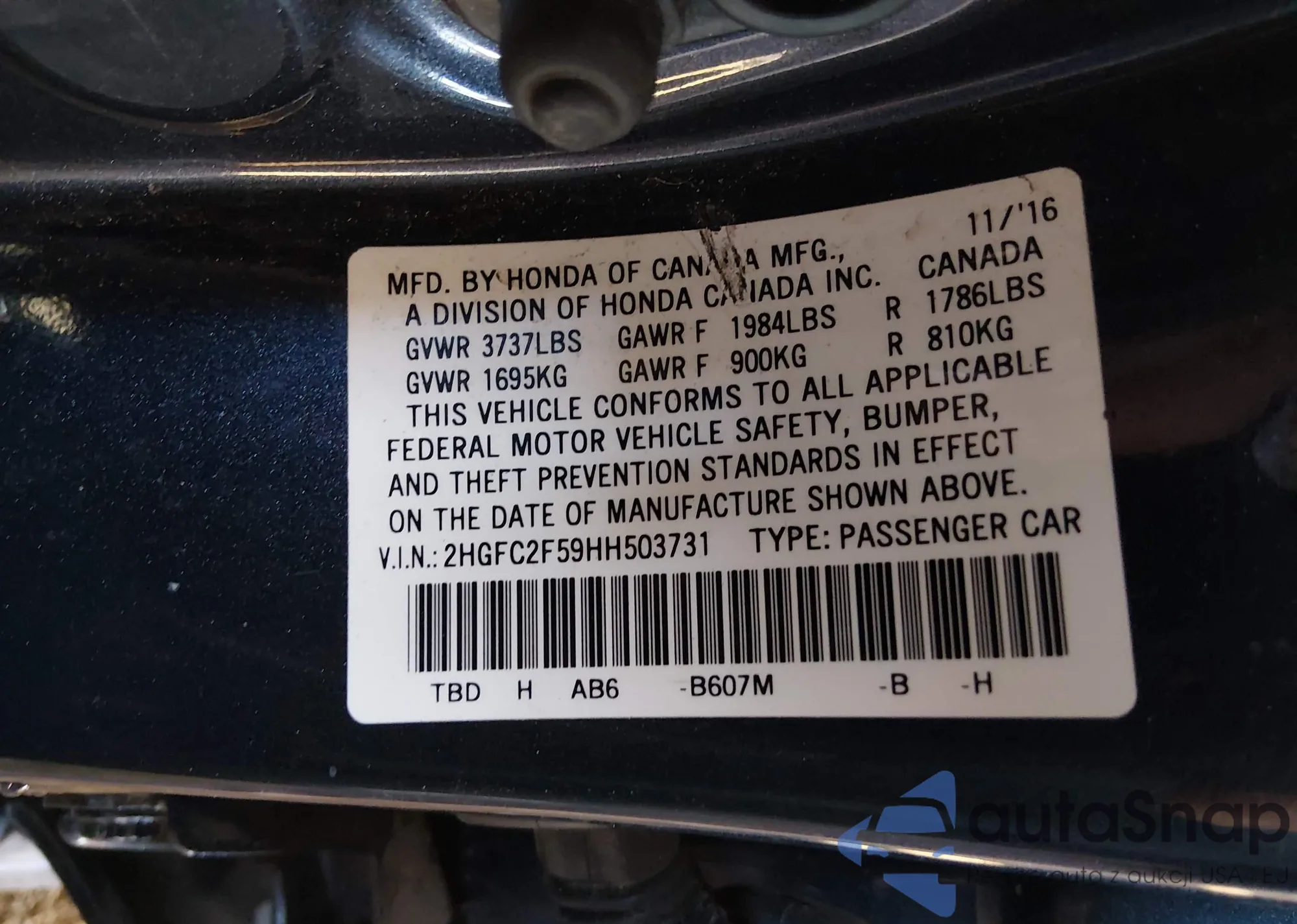 VIN: 2HGFC2F59HH503731
