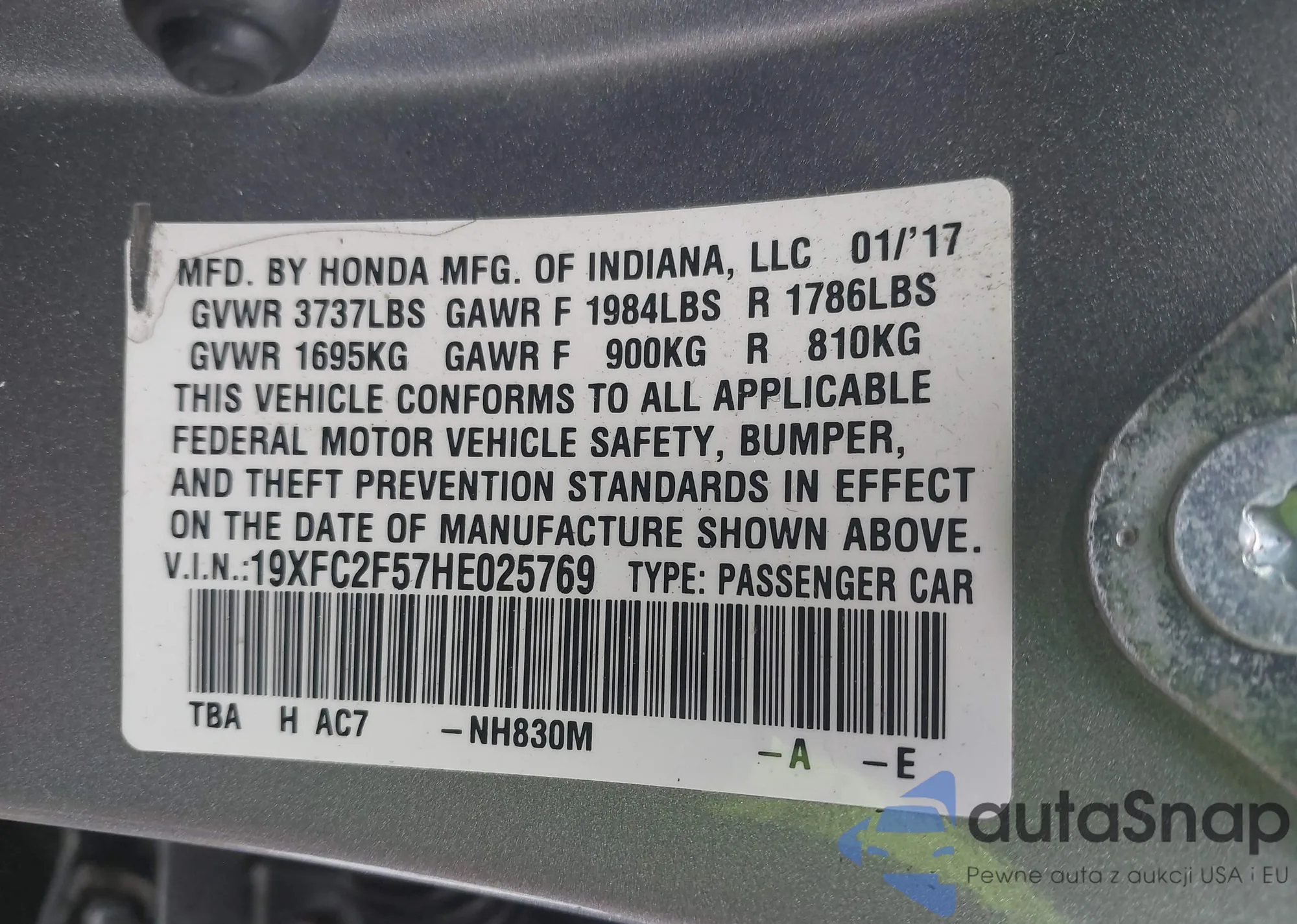 VIN: 19XFC2F57HE025769