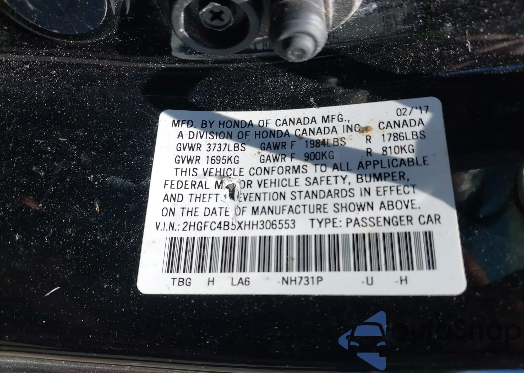VIN: 2HGFC4B5XHH306553