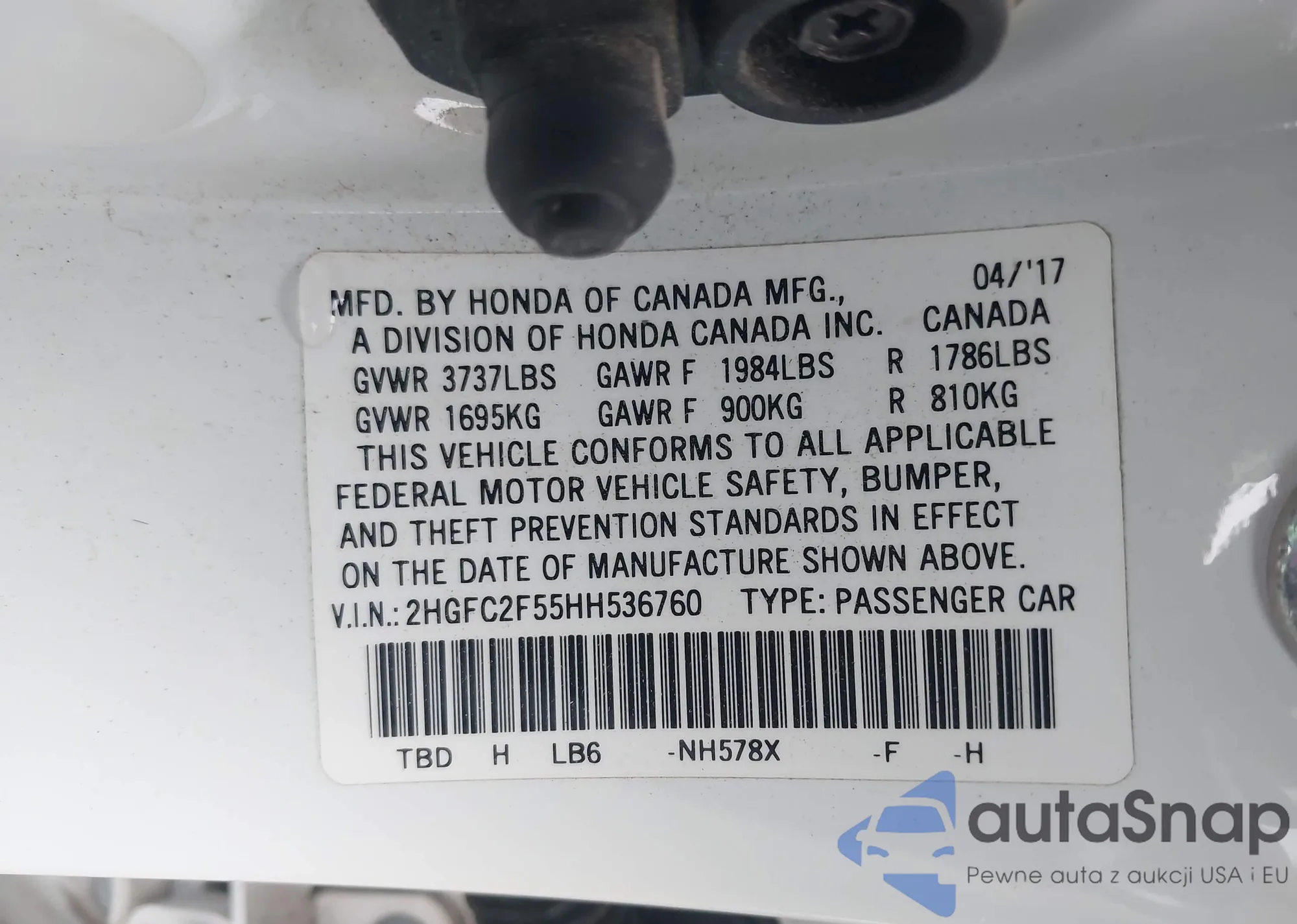 VIN: 2HGFC2F55HH536760