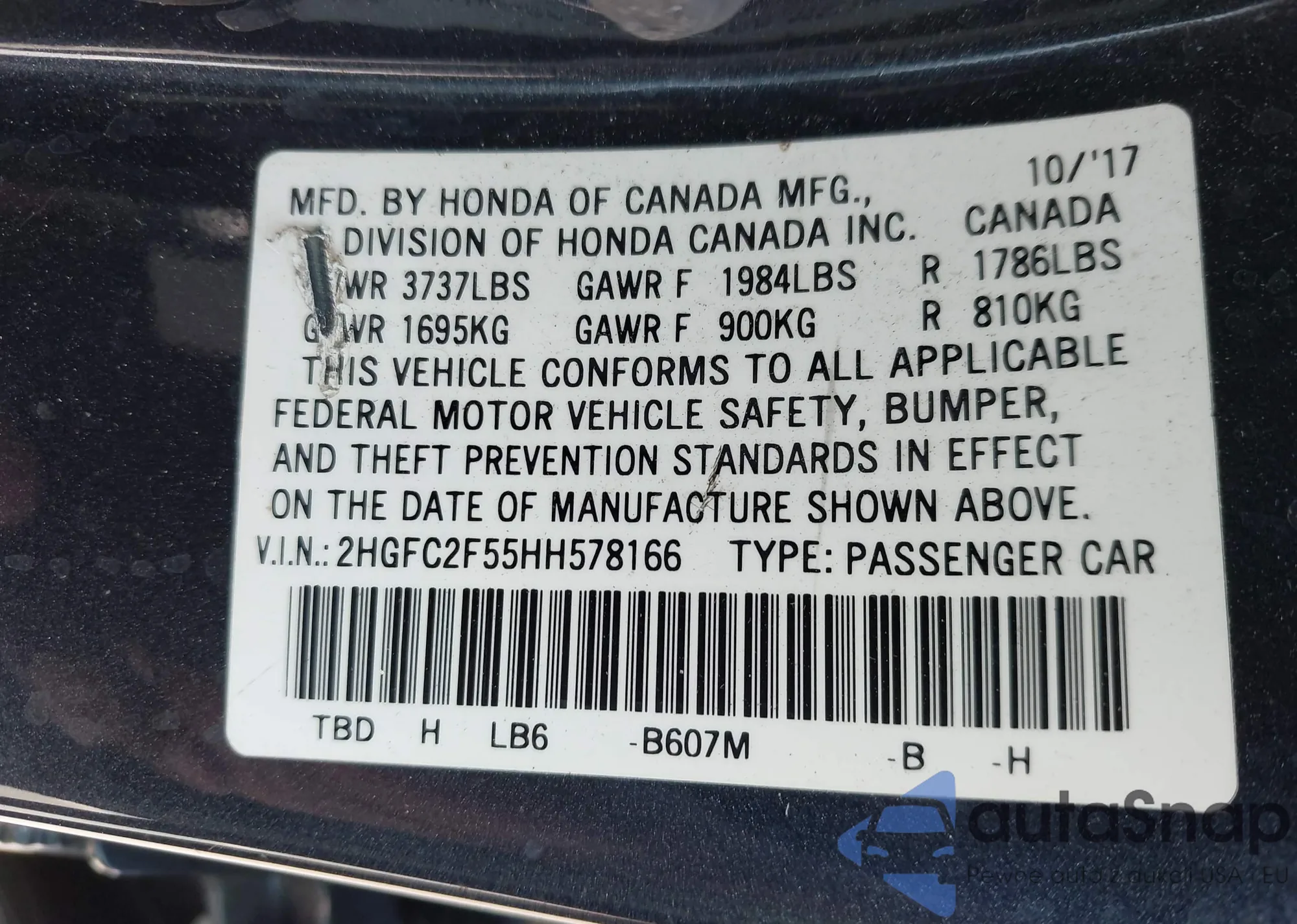 • VIN: 2HGFC2F55HH578166
