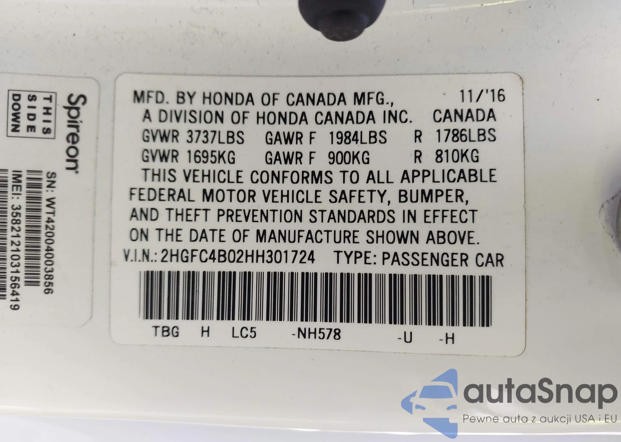 The car Honda Civic 2017 (VIN 2HGFC4B02HH301724) has already been auctioned 1 times and/or is sold by an unverified seller. We recommend checking the Carfax report and confirming registration possibilities before purchase.