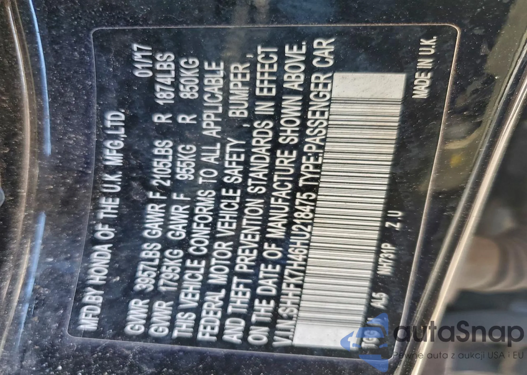 VIN: SHHFK7H46HU218475