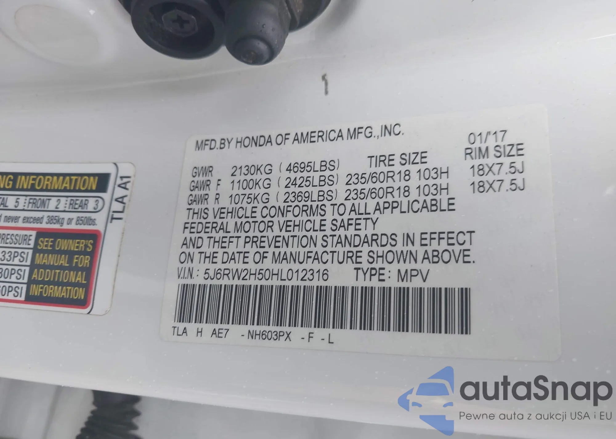 VIN: 5J6RW2H50HL012316