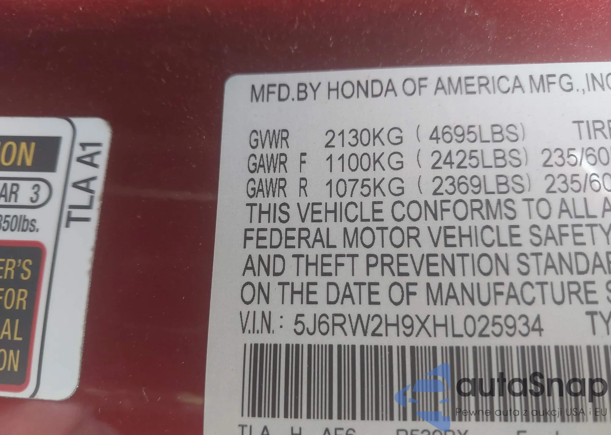 VIN: 5J6RW2H9XHL025934