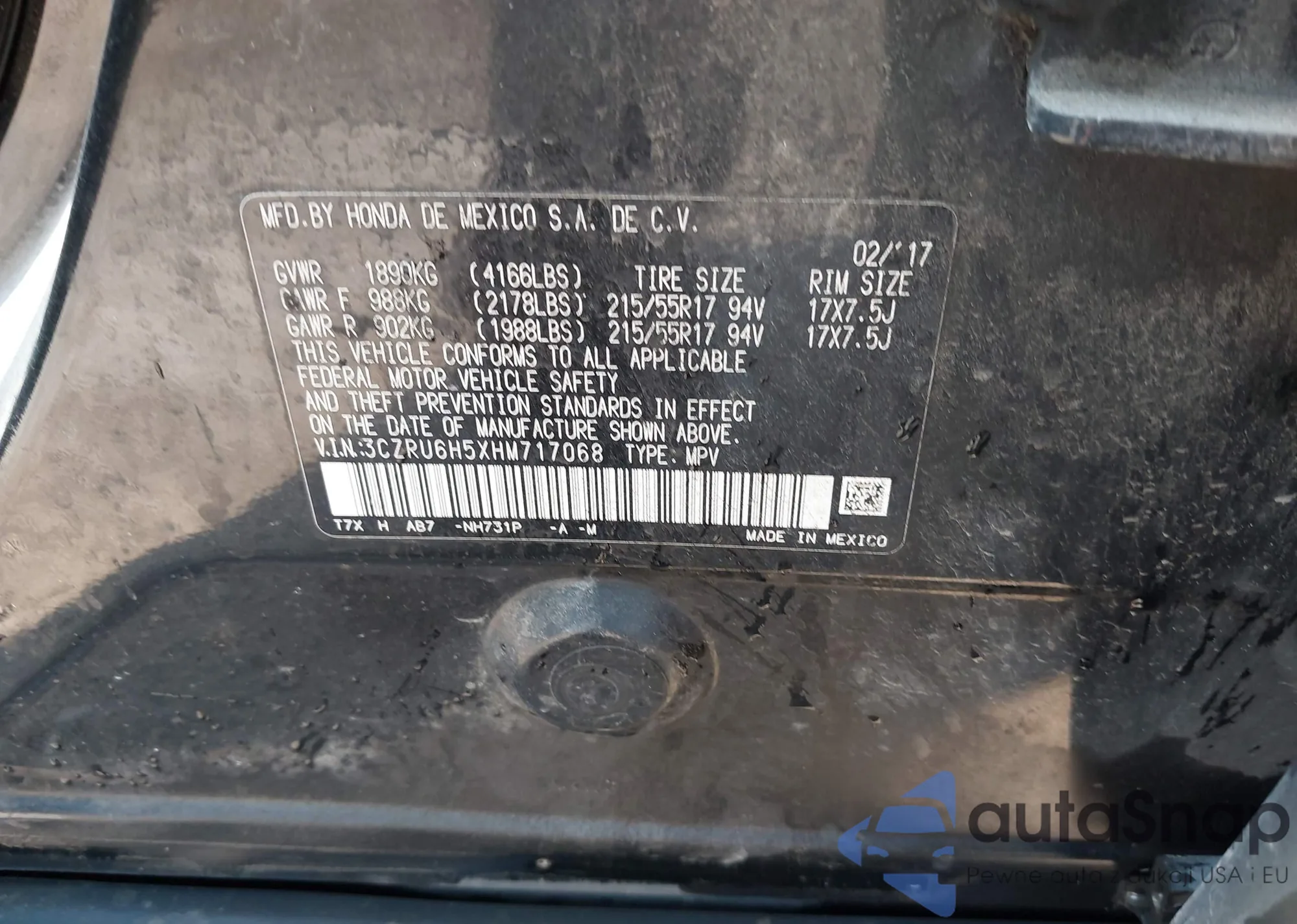Make: 2017 Honda Hr-V Ex