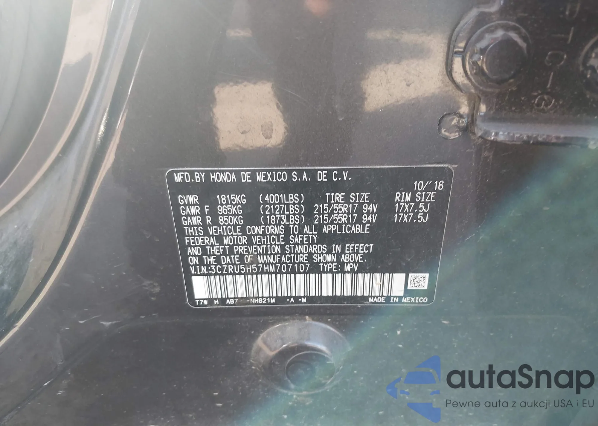 • VIN: 3CZRU5H57HM707107