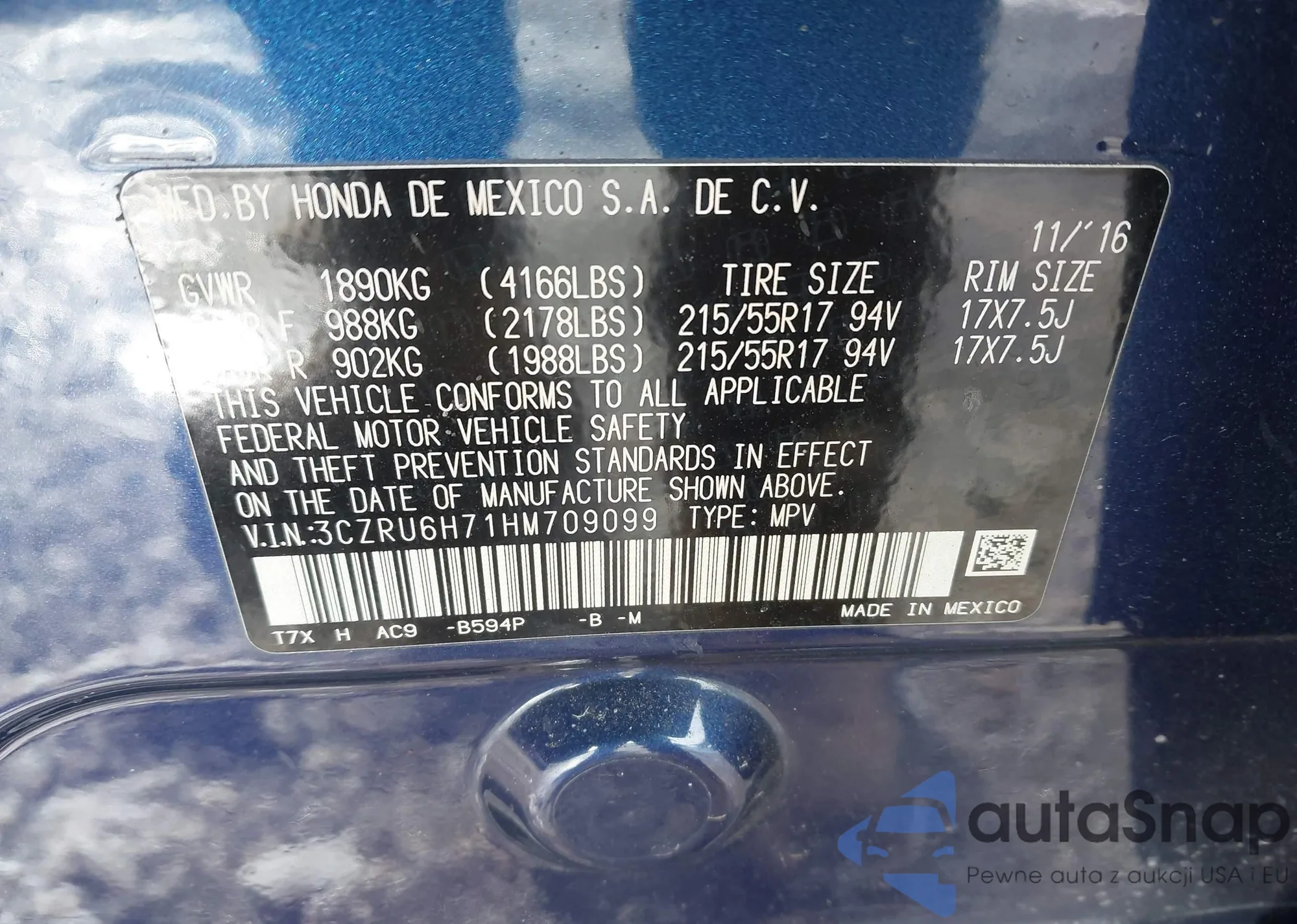 VIN: 3CZRU6H71HM709099