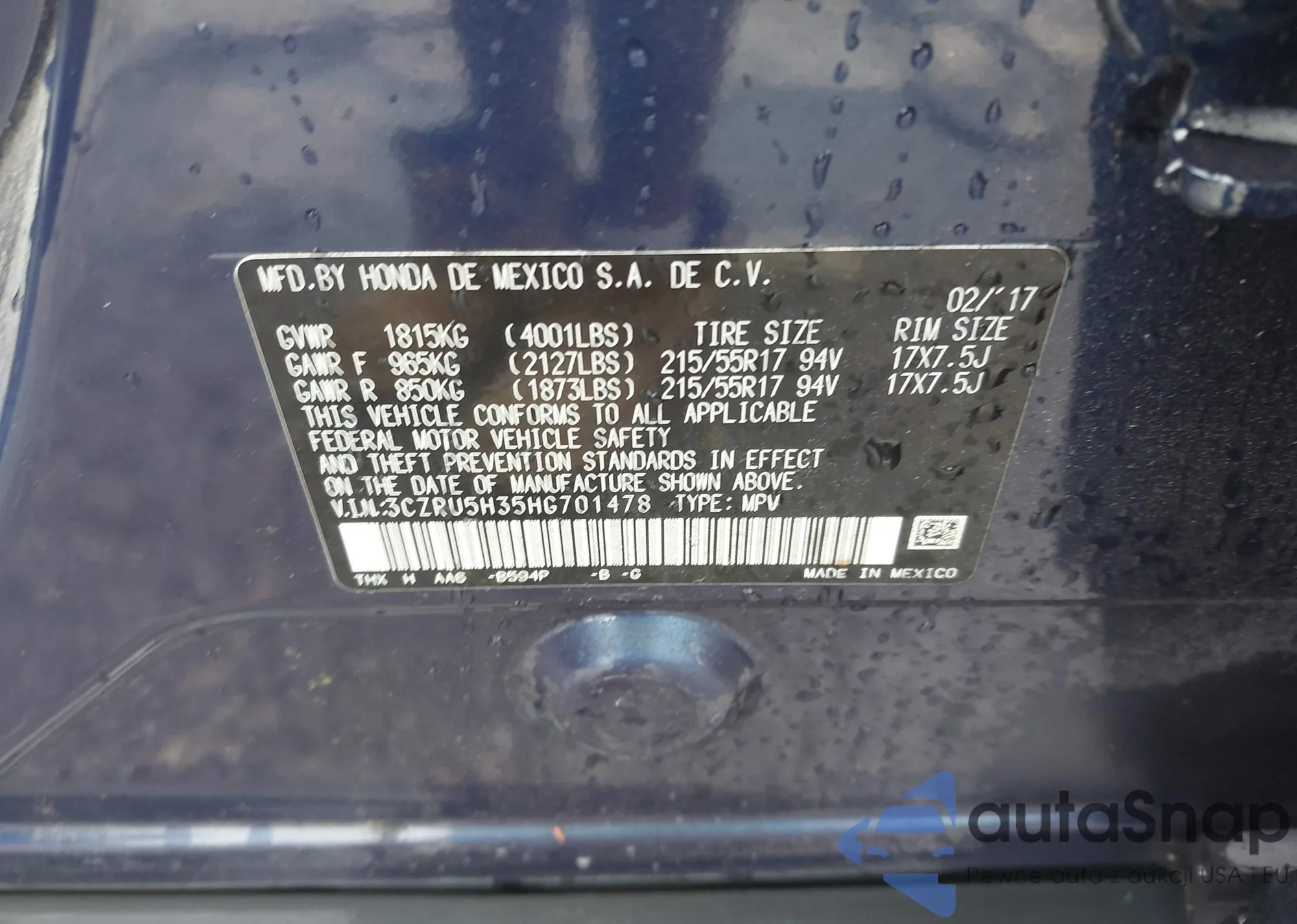 Make: 2017 Honda Hr-V Lx