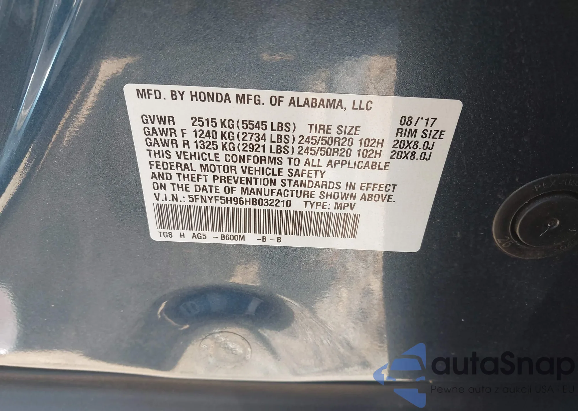 VIN: 5FNYF5H96HB032210