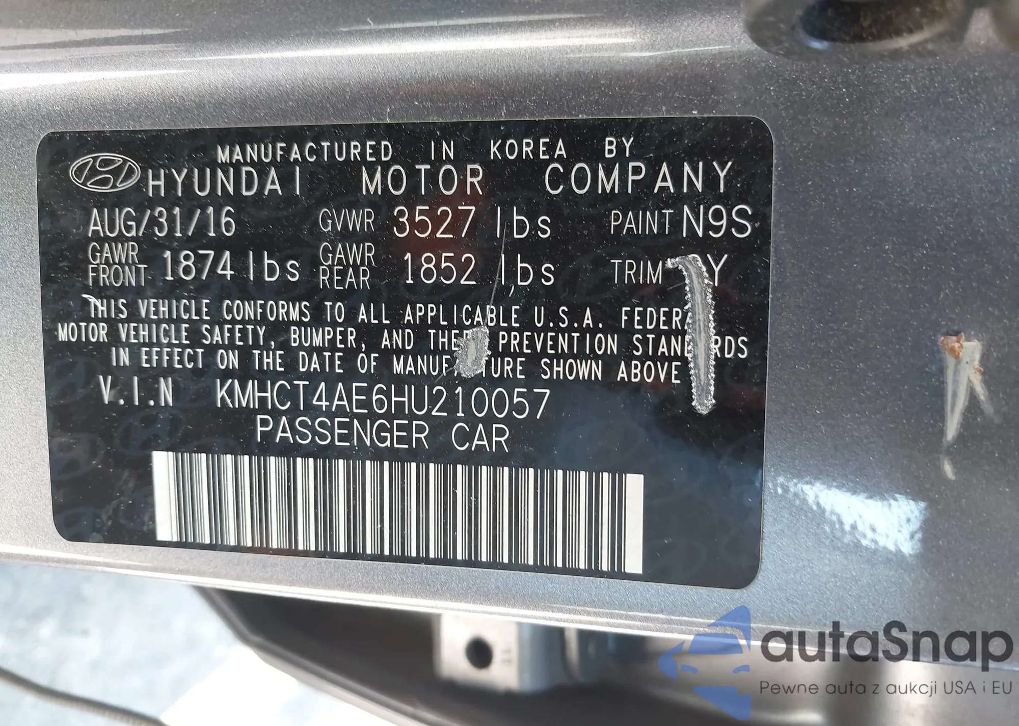 VIN: KMHCT4AE6HU210057