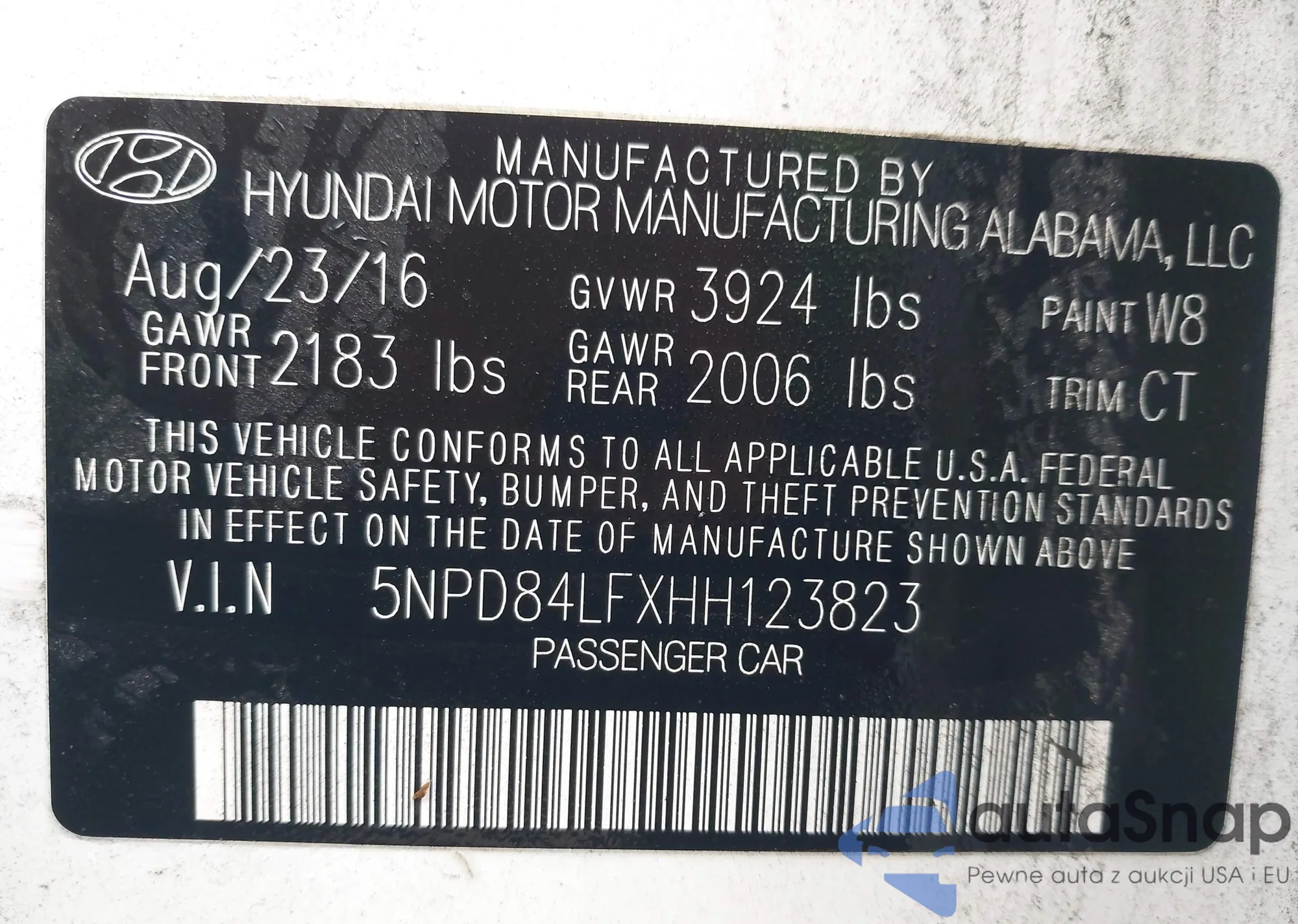 The car Hyundai Elantra 2017 (VIN 5NPD84LFXHH123823) has not been auctioned before. The documents are clean, and the mileage matches or is below the market average. Sold by an insurance company – we recommend purchase. Delivery to the port will take approx. 6–8 weeks.