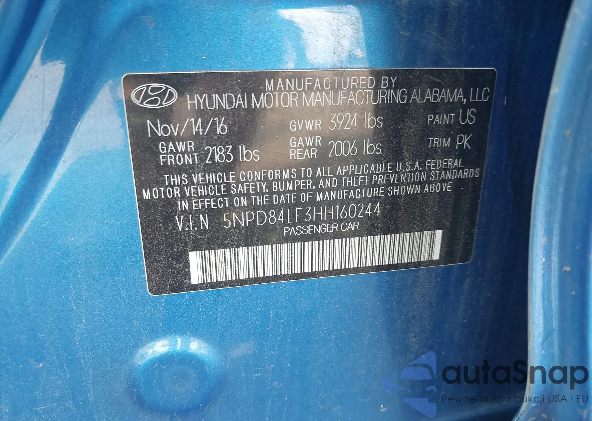VIN: 5NPD84LF3HH160244