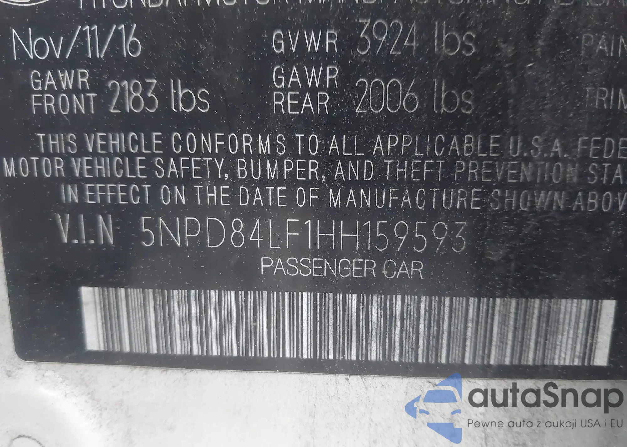 The car Hyundai Elantra 2017 (VIN 5NPD84LF1HH159593) is sold by an unverified seller. We recommend checking the Carfax report and confirming registration possibilities before purchase.
