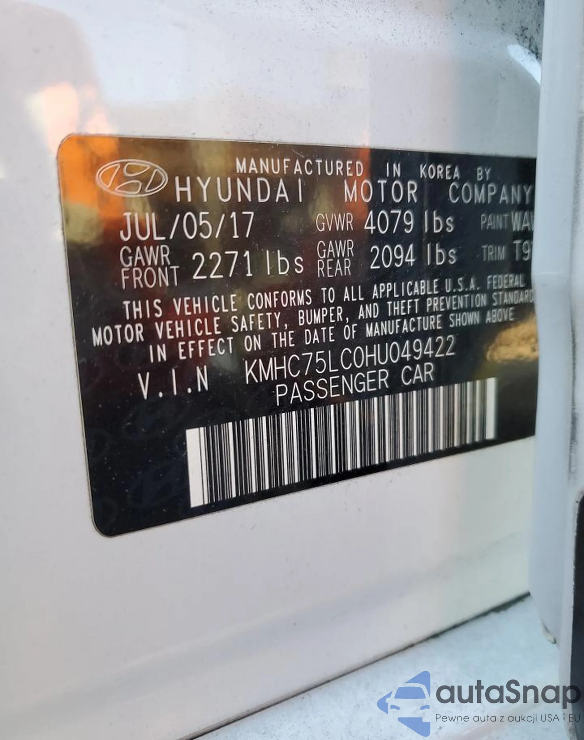 The car Hyundai IONIQ 2017 (VIN KMHC75LC0HU049422) is sold by an unverified seller. We recommend checking the Carfax report and confirming registration possibilities before purchase.