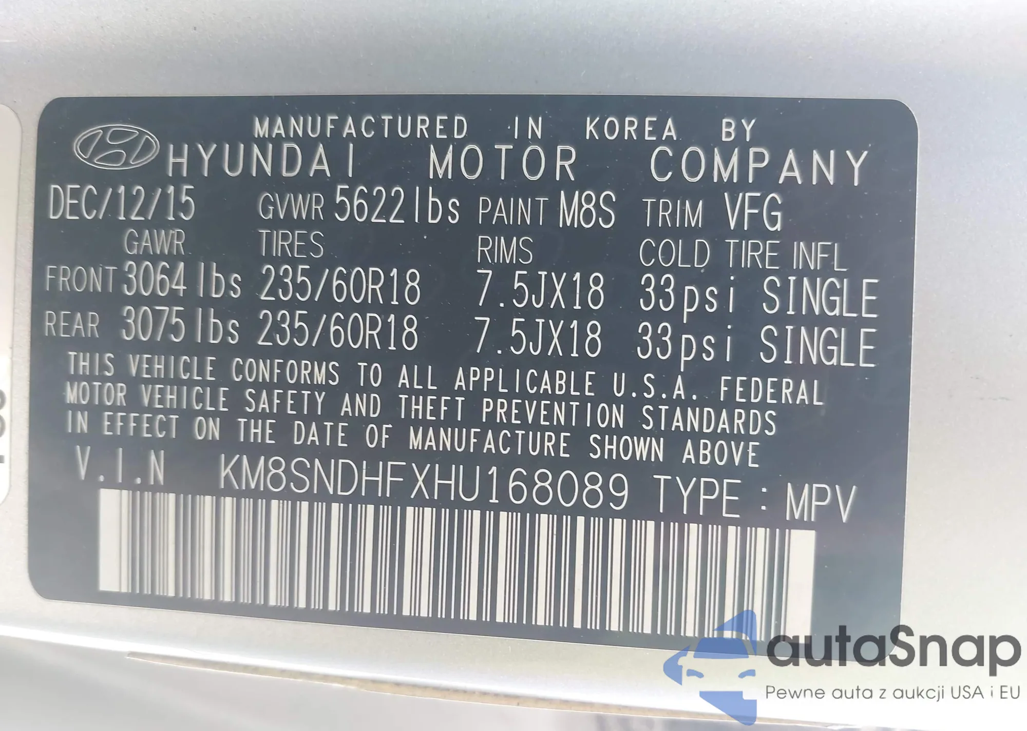 The car Hyundai Santa Fe 2017 (VIN KM8SNDHFXHU168089) is sold by an unverified seller. We recommend checking the Carfax report and confirming registration possibilities before purchase.