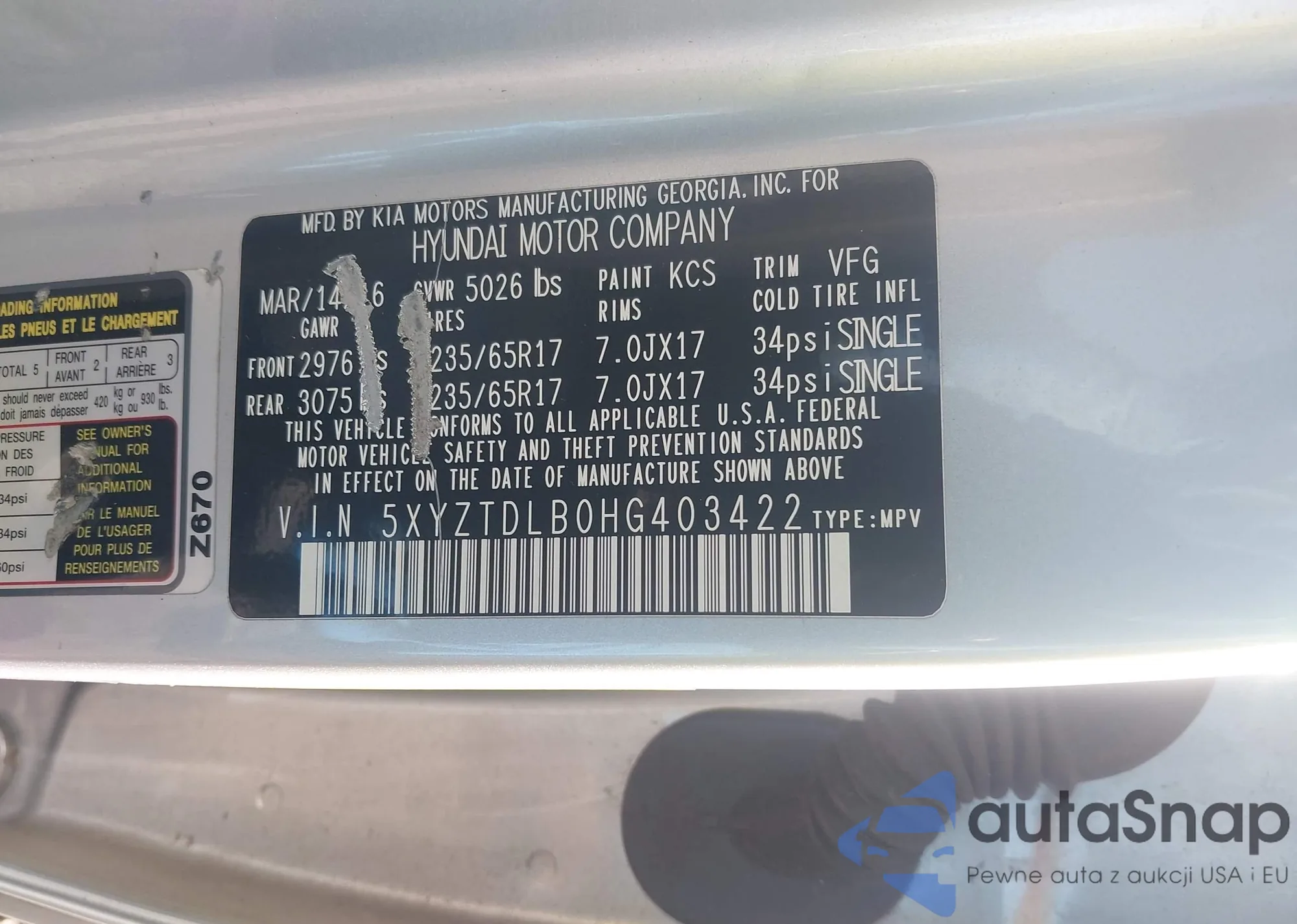 VIN: 5XYZTDLB0HG403422
