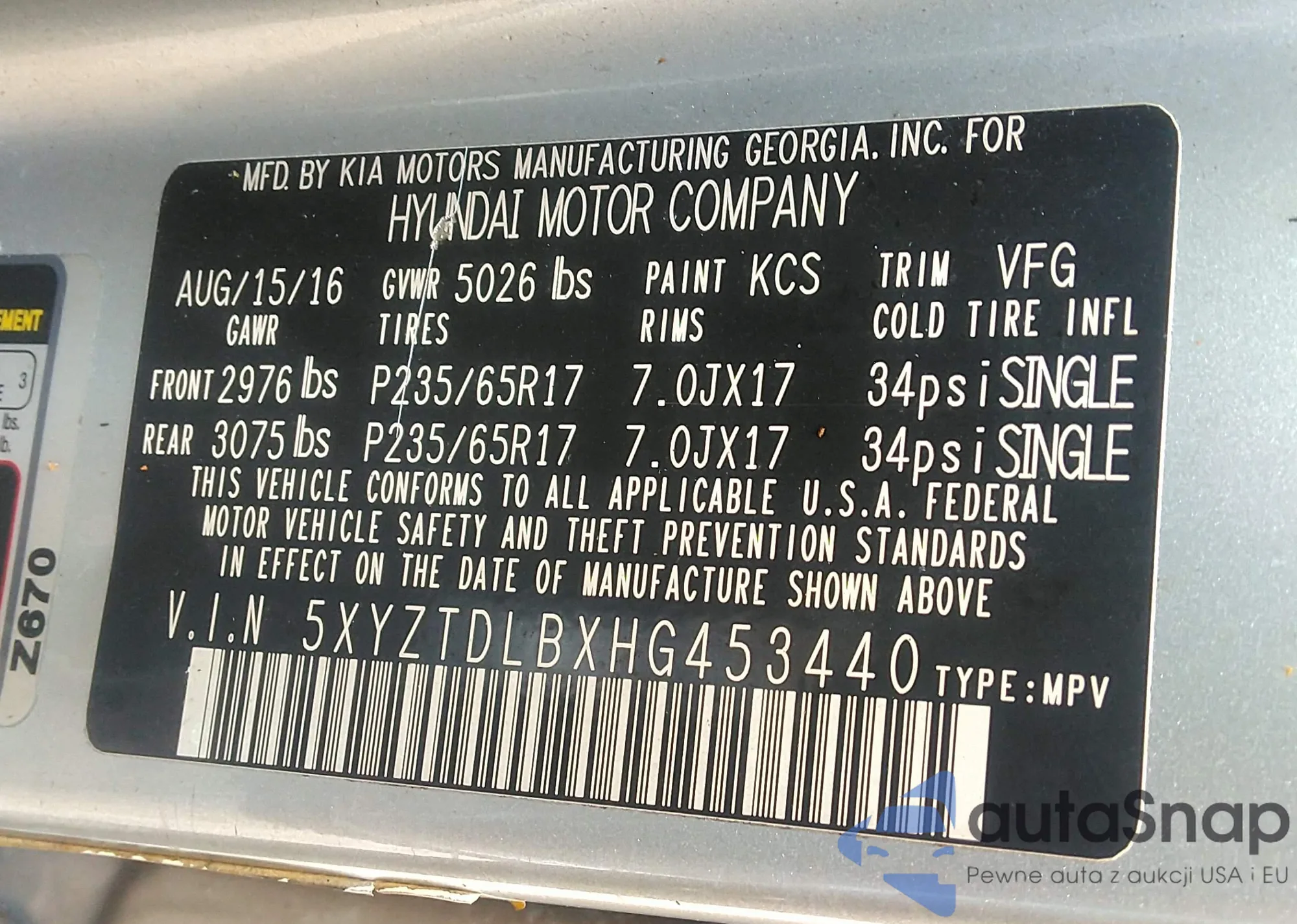 VIN: 5XYZTDLBXHG453440